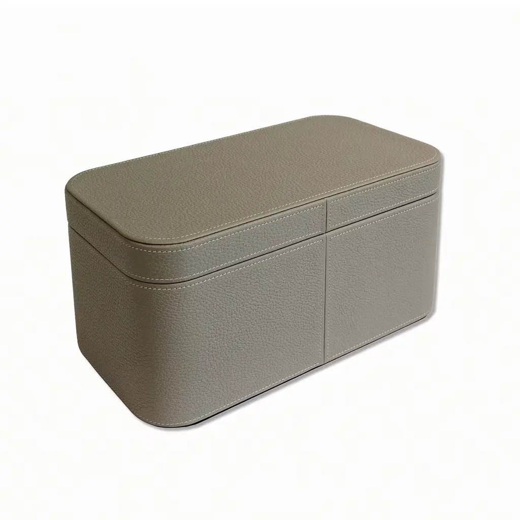 Wooden handmade box dressed in soft genuine leather and microfiber internal. Available in 14 different colors. Please, ask the Concierge for further details.