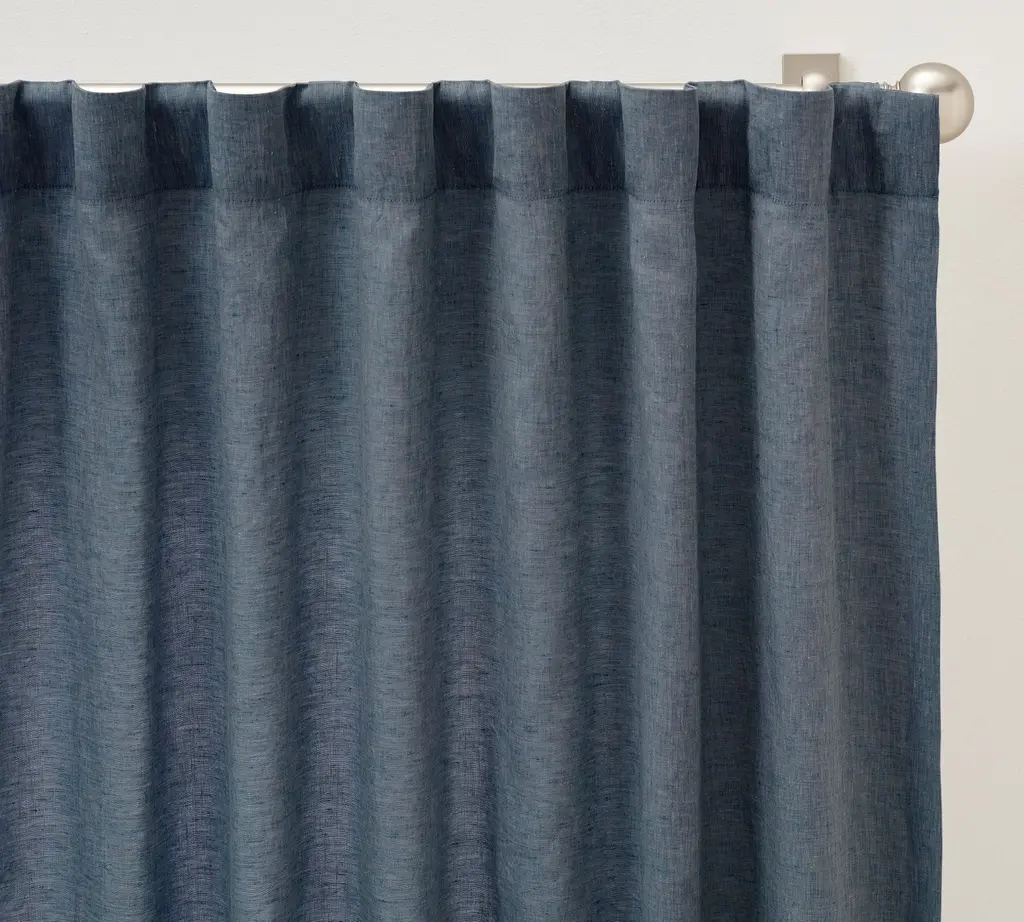 Open Box: Belgian Flax Linen Blackout Curtain, 50"w X 84"l - Steel Blue