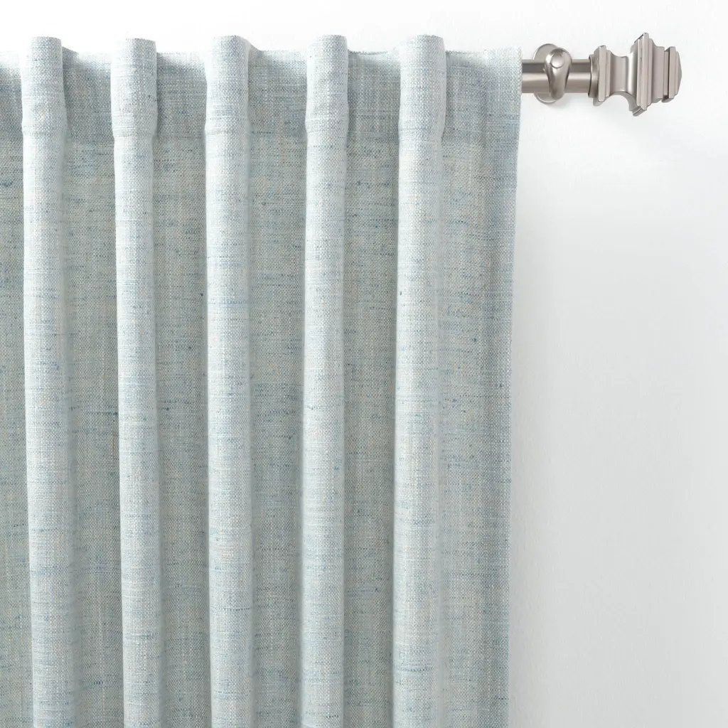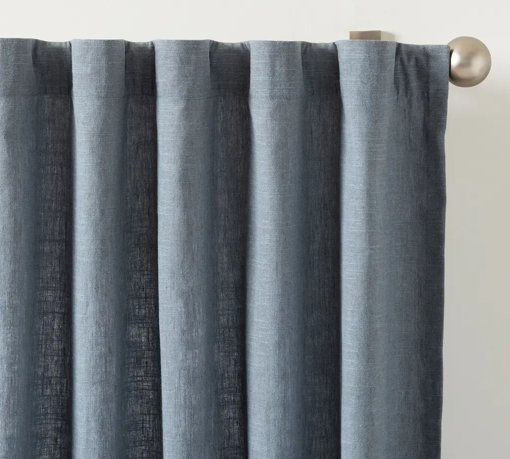 Open Box: Belgian Flax Linen Curtain, 100"w X 108"l - Blue Chambray