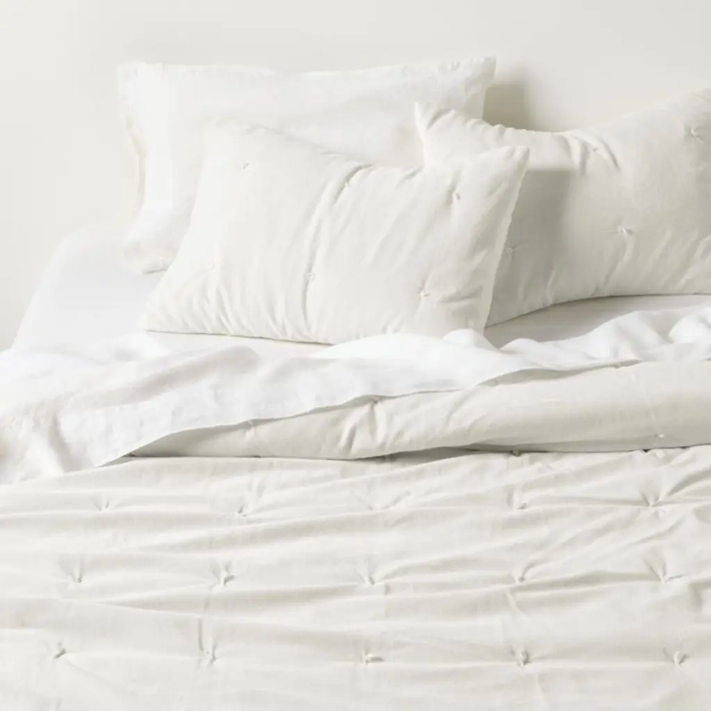 With a relaxed look and luxurious hand, linen is a fabric we turn to again and again. Ours is beautifully woven from the world's finest Belgian flax, prewashed for superior softness that only gets better with time. Double flanges with raw edges bring a casual sensibility to the design, while the natural, breathable fibers make this bedding perfect for year-round layering. Natural fibers, like our flax linen, offer beautiful, unique variations in color ensuring your bedding is one of a kind.
