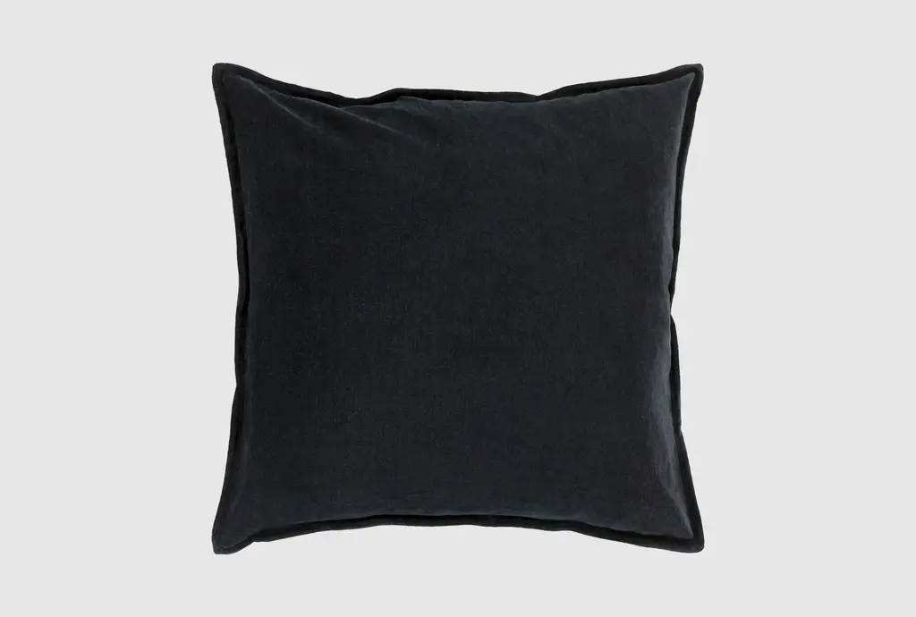 Open Box: Belgian Flax Linen Double Flange Sham, Euro, Set Of 2 - Black