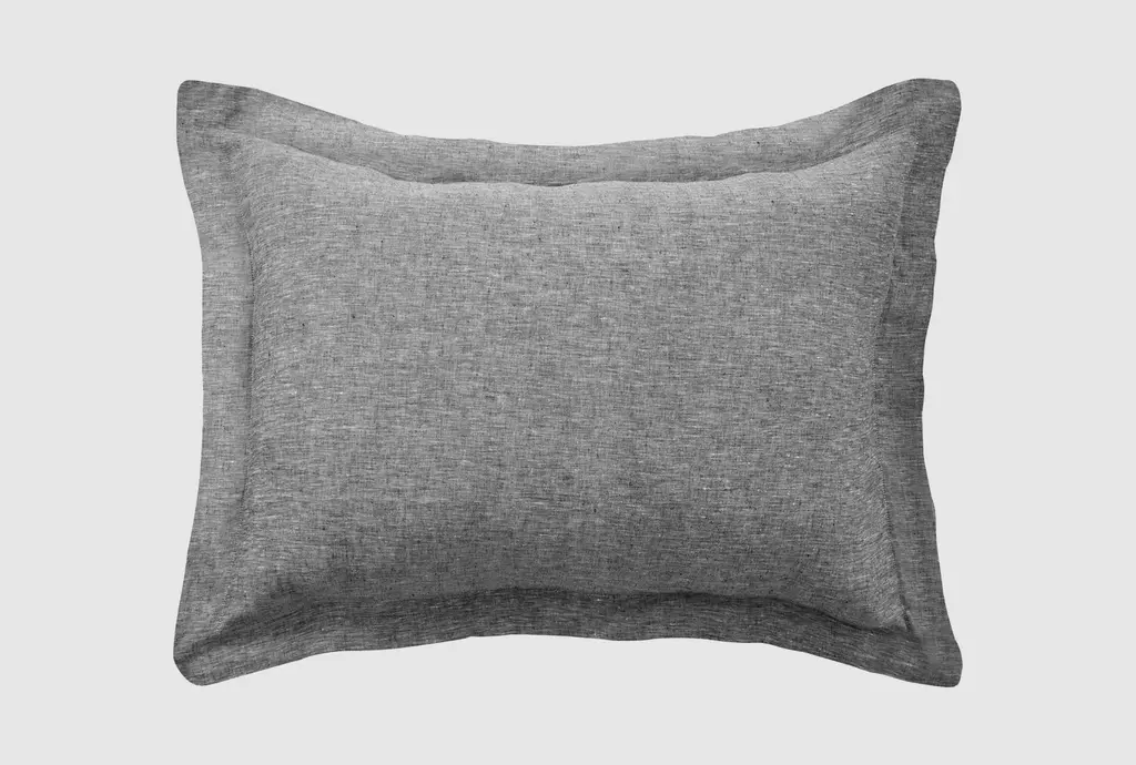 Open Box: Belgian Flax Linen Double Flange Sham, Standard Set Of 2 - Heathered Charcoal