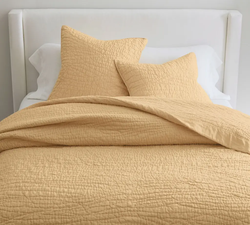 With the look and feel of a traditional quilt, our linen bedding is stitched in an intricate floral pattern. Beautifully woven from the world's finest Belgian flax, it's prewashed for incredible softness that only gets better with time. We love how this breathable, naturally insulating fabric keeps you cool in warm weather and cozy when the temperature dips. Natural fibers, like our flax linen, offer beautiful, unique variations in color, ensuring your bedding is one of a kind.