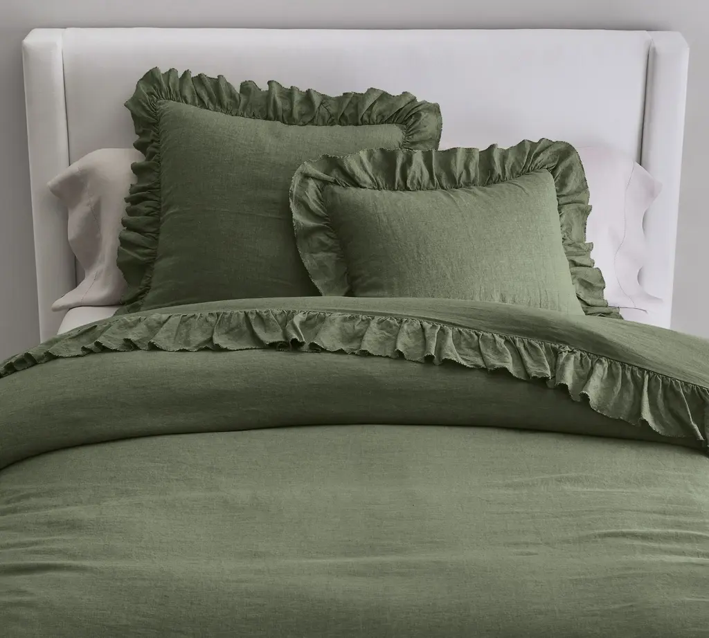 Our romantic ruffled bedding with fringe detail and raw edges is tailored from the world’s finest Belgian flax. Prewashed for softness—that only gets softer with each wash—it’s also naturally insulating, keeping you warm when it’s cold and cool when it’s warm.