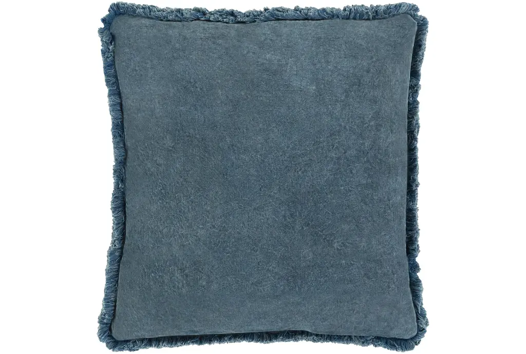 Open Box: Belgian Flax Linen Fringe Ruffle Sham, Euro Set Of 3 - Denim