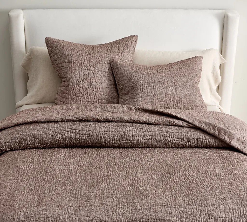 The epitome of casual luxury, our quilted bedding is crafted of the finest heirloom linen and stitched by hand. This collection is proudly made at a Fair Trade Certified™ factory. Natural fibers, like our flax linen, offer beautiful, unique variations in color, ensuring your bedding is one of a kind.