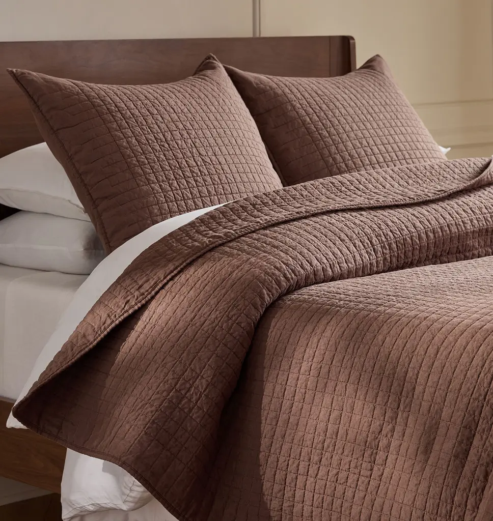 Open Box: Belgian Flax Linen Handcrafted Quilt, Full/queen - Bronze