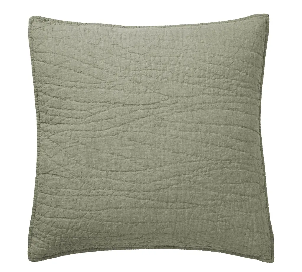Open Box: Belgian Flax Linen Handcrafted Quilted Sham, Euro, Set Of 2 - Cypress