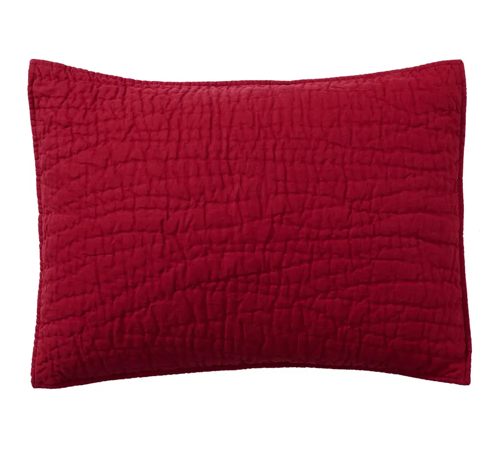 Open Box: Belgian Flax Linen Handcrafted Quilted Sham, Euro - Set Of 2 - Red Berry