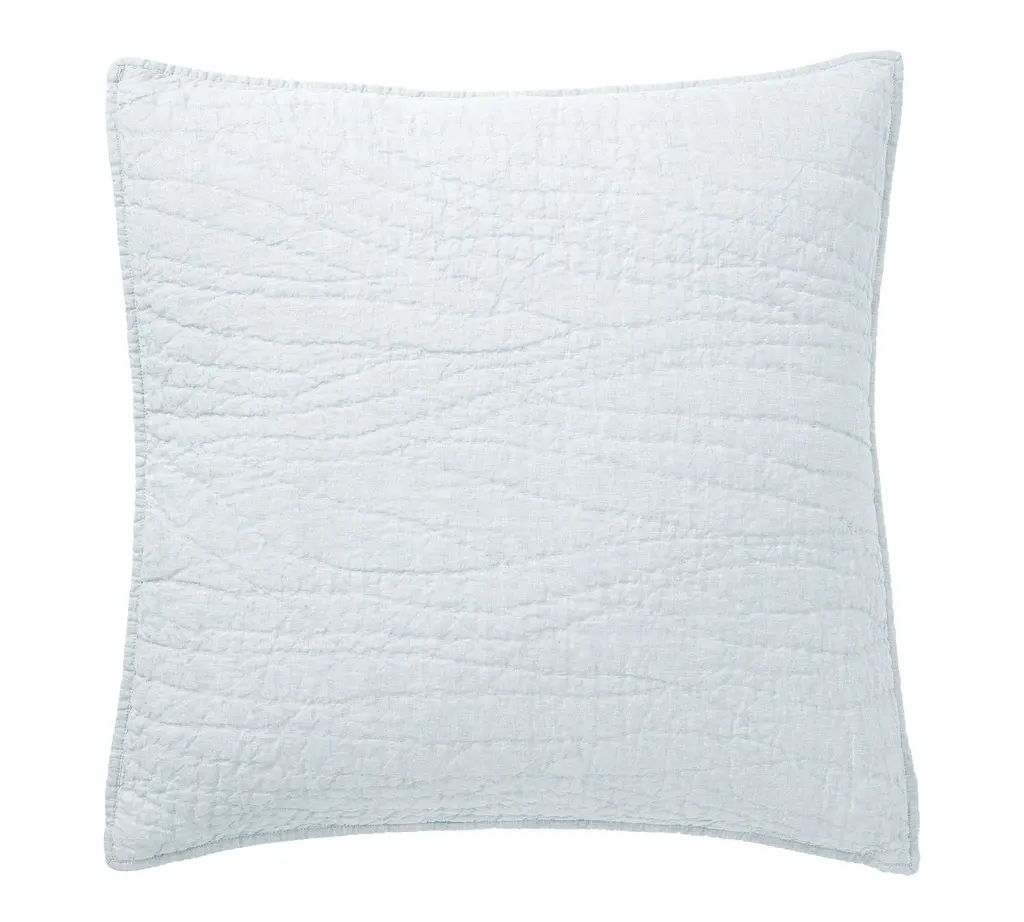Open Box: Belgian Flax Linen Handcrafted Quilted Sham, Euro, Set Of 3 - Mineral Blue