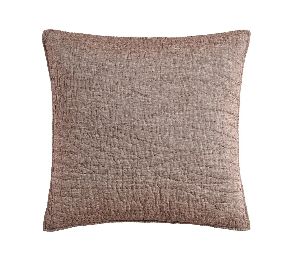 Open Box: Belgian Flax Linen Handcrafted Quilted Sham, Euro Set Of 3 - Mocha