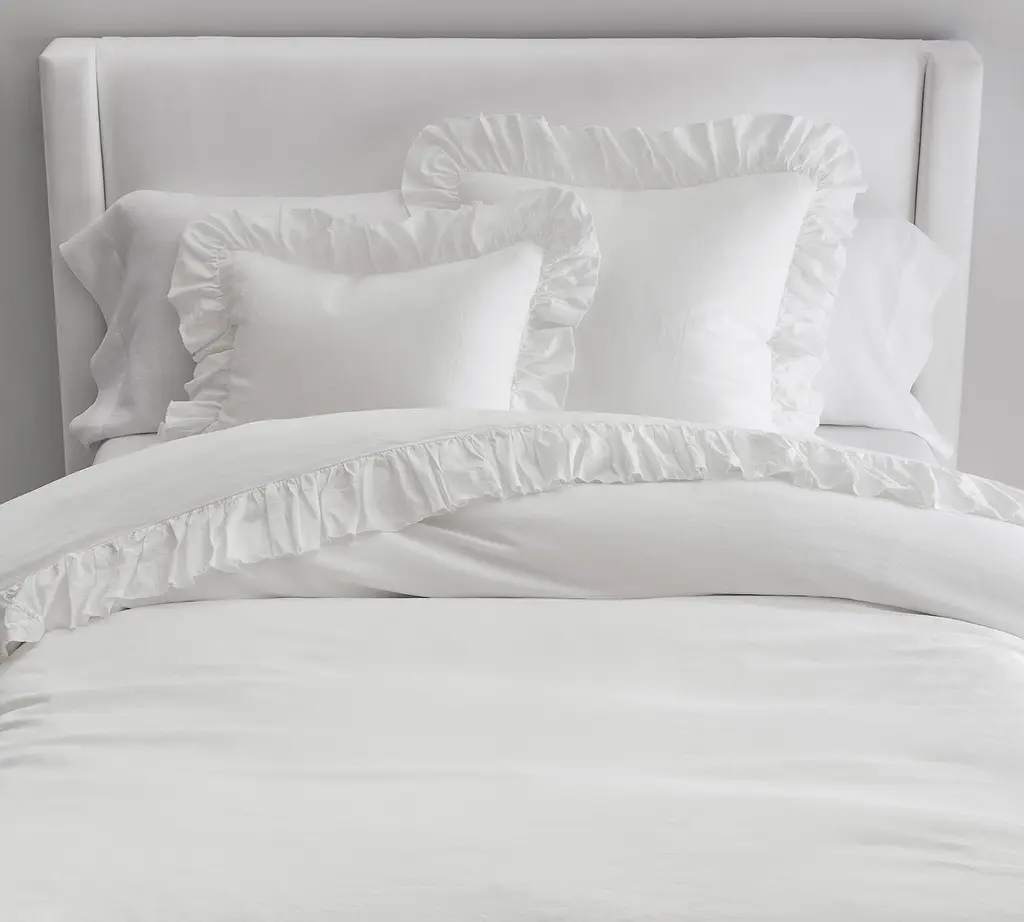 Our romantic ruffled bedding with fringe detail and raw edges is tailored from the world’s finest Belgian flax. Prewashed for softness—that only gets softer with each wash—it’s also naturally insulating, keeping you warm when it’s cold and cool when it’s warm.