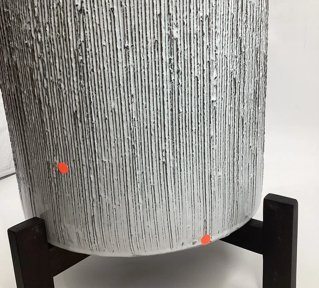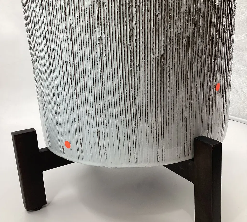 Mixed materials come together beautifully in our Bungalow Planters. Crafted of ceramic with a variegated finish and carved look, they rest on sturdy wood stands.