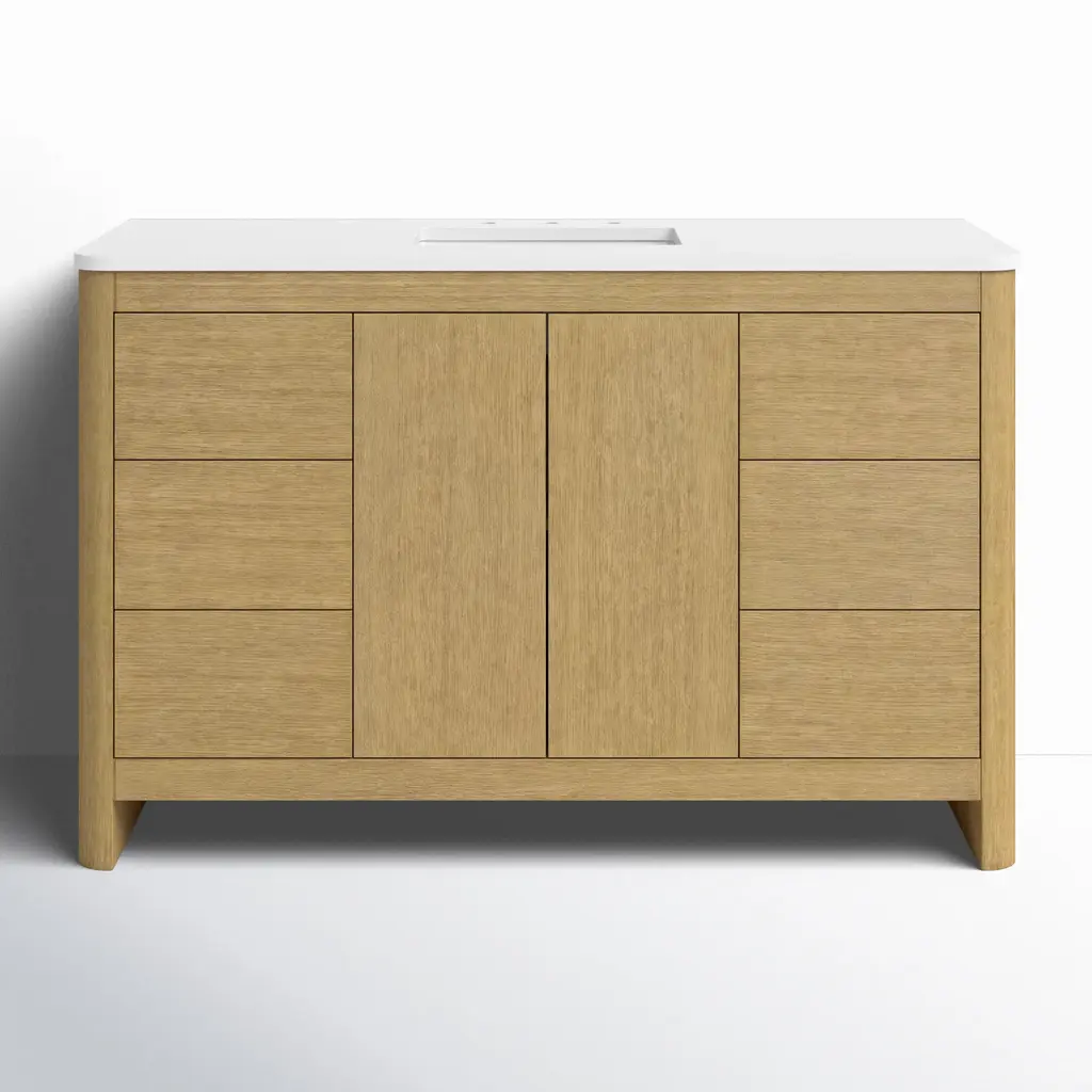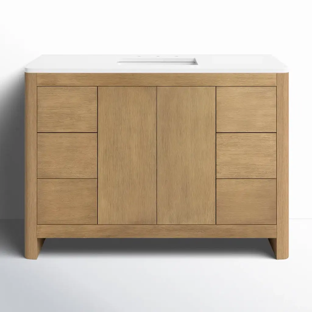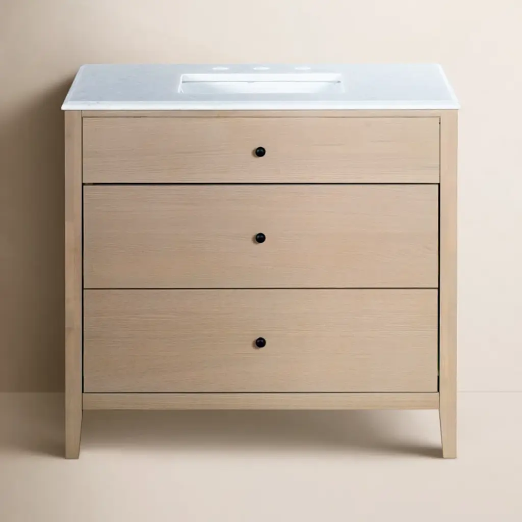 A salute to minimalist design, our Cayman Collection has a timeless look that's warm and welcoming. Crafted in solid wood, each piece has a dimensional finish that adds character while the marble top lends spa-like sophistication.