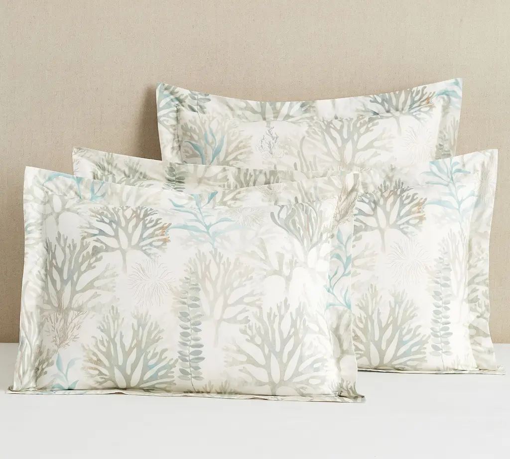A fresh take on under-the-sea style, our printed coral bedding brings the beauty of the ocean to your bed. Watercolor hues are printed on eco-friendly organic cotton, so you can drift off to dreamland in good conscience.