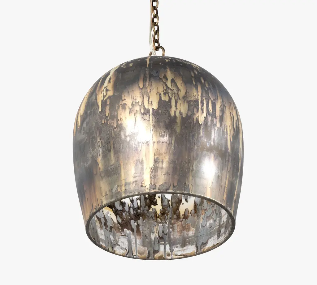 Inspired by the understated elegance and glamour of old Hollywood, this distinctive pendant lamp lends a sense of casual luxury to any room. Made with hand-finished, acid-washed glass, each piece has a one-of-a-kind pattern in striking metallic hues. Looks great as a solo piece or hung in multiples for a more dramatic look.