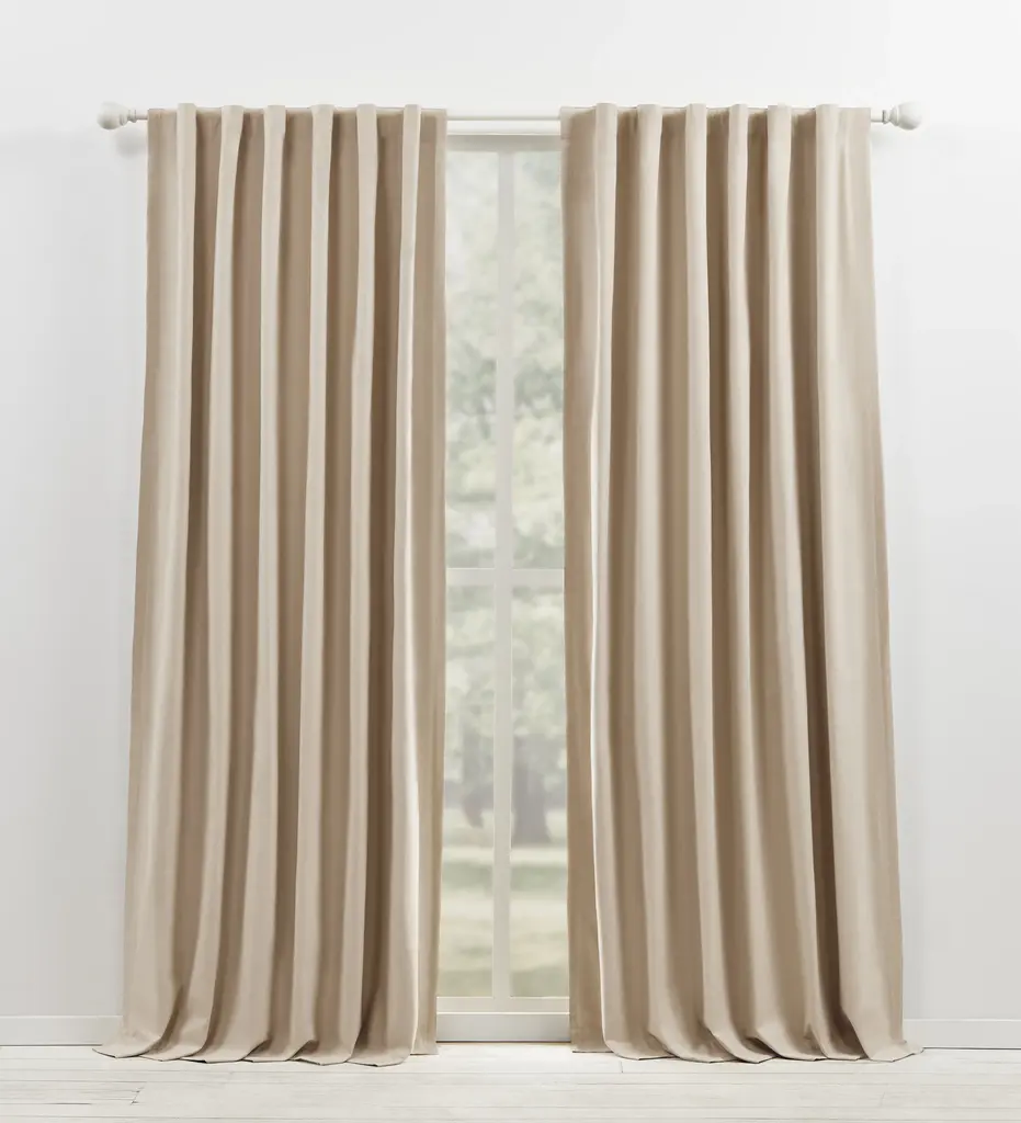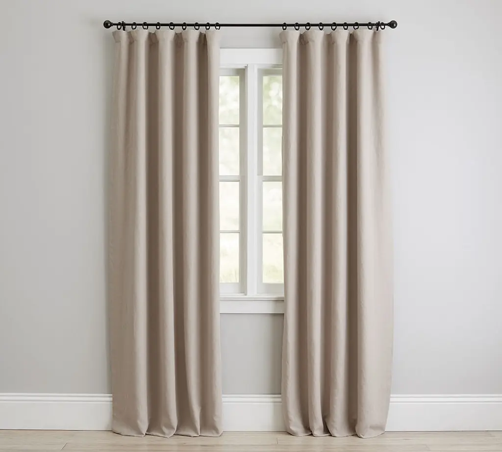 Woven from premium flax and washed for a luxe, lived-in look. A dreamy choice in the bedroom or living room. Dual top treatment lets you choose how they hang. Sewn-in blackout liner blocks unwanted light.