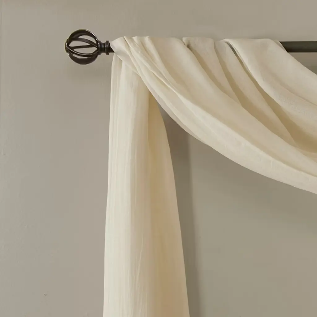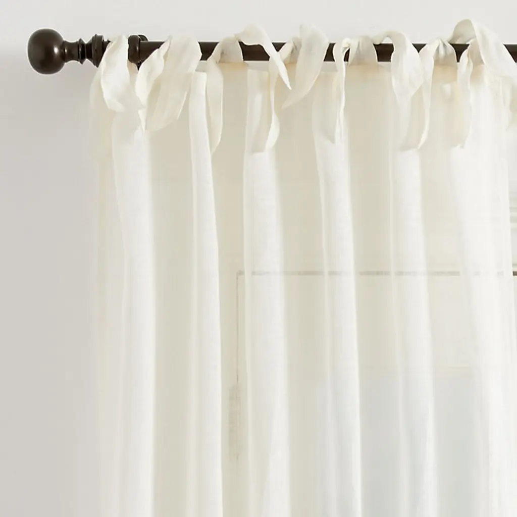 Woven from premium flax and washed for a luxe, lived-in look. Opaque to mute light and provide privacy. A dreamy choice in the bedroom or living room. Functional tie top header for easy hanging.