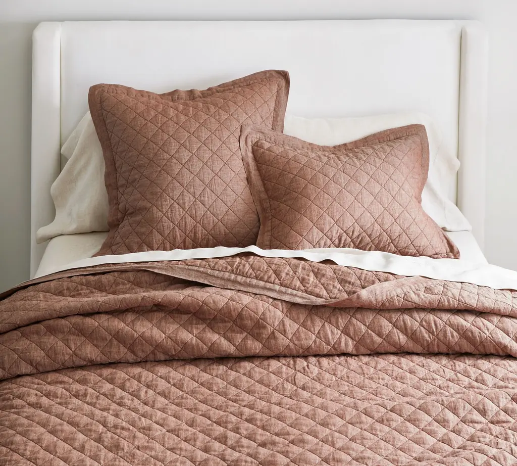 Open Box: European Flax Linen Tack Stitch Quilt & Shams