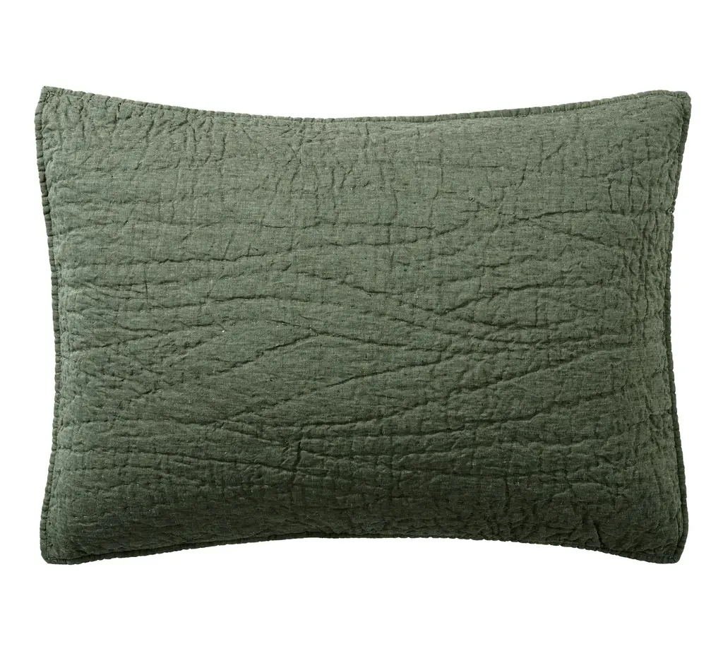 Open Box: European Flax Linen Waffle Quilted Sham, Standard Set Of 2 - Pine