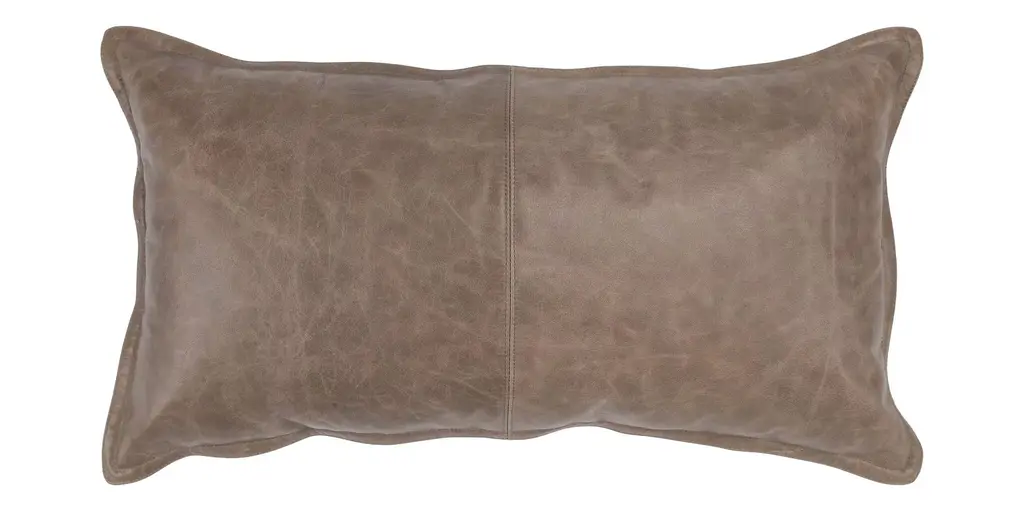 Distressed leather (in your choice of neutral) is material we love for looking luxe and relaxed at the same time. Stitched panels are signatures of handcrafting, and natural leather variations make each pillow an original. This is a handsome classic and a naturally smooth layer to mingle with woven textures.