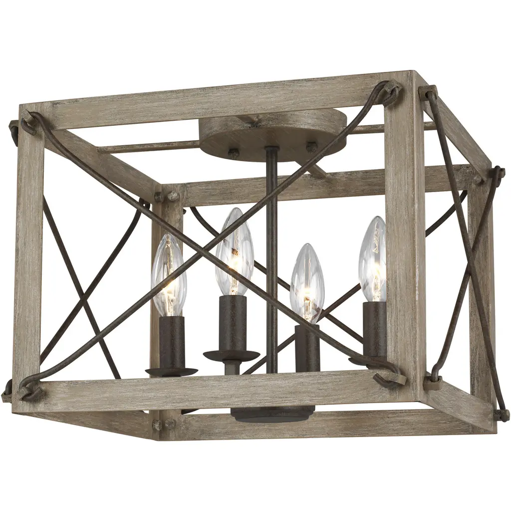 Rustic farmhouse style meets modern design in this distinctive chandelier. An open geometric frame nods to crafted wood beams with its weathered, hand-painted finish, the lantern silhouette secured by rope-wrapped, hooked rods that add rich texture. Inside, a trio of parchment-glass shades give off a warm glow to beautifully brighten your dining area, entryway or bedroom.