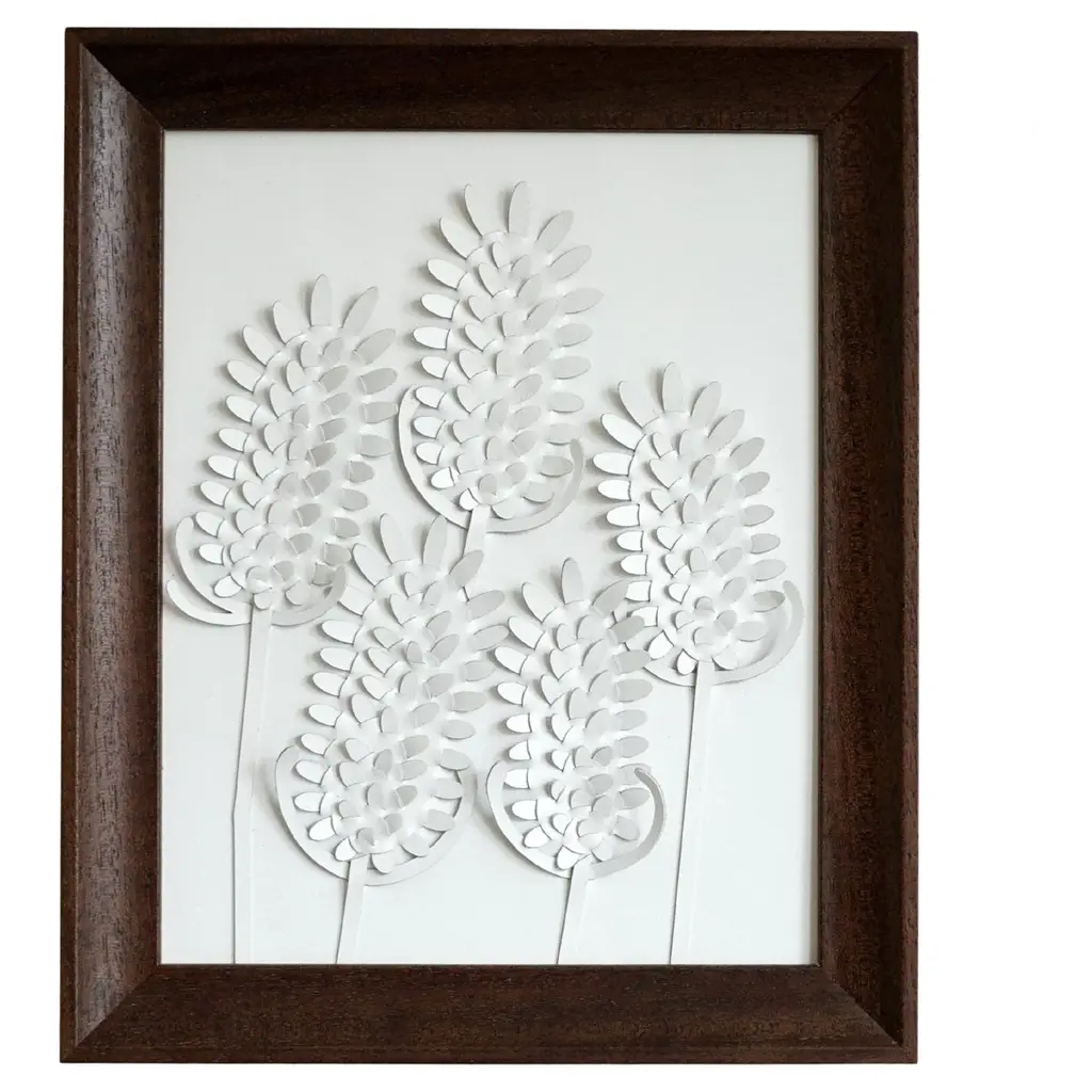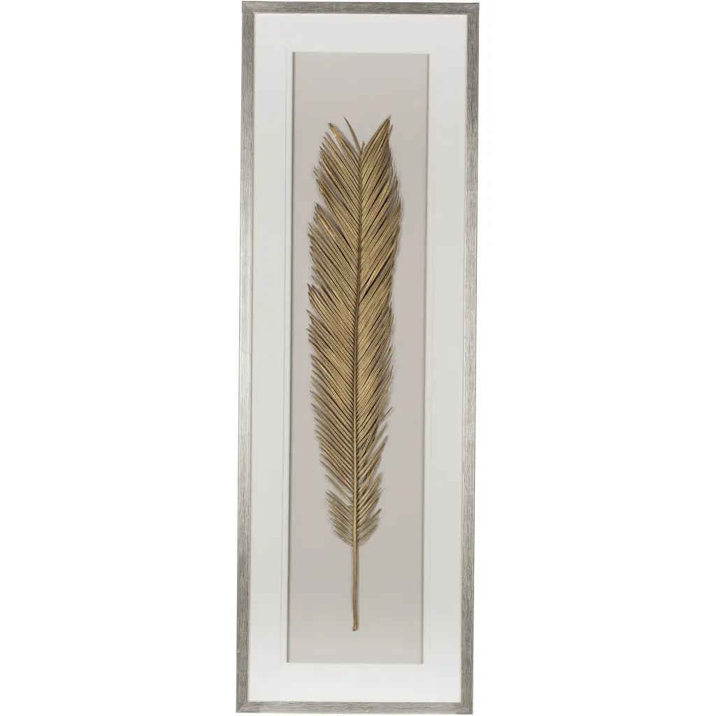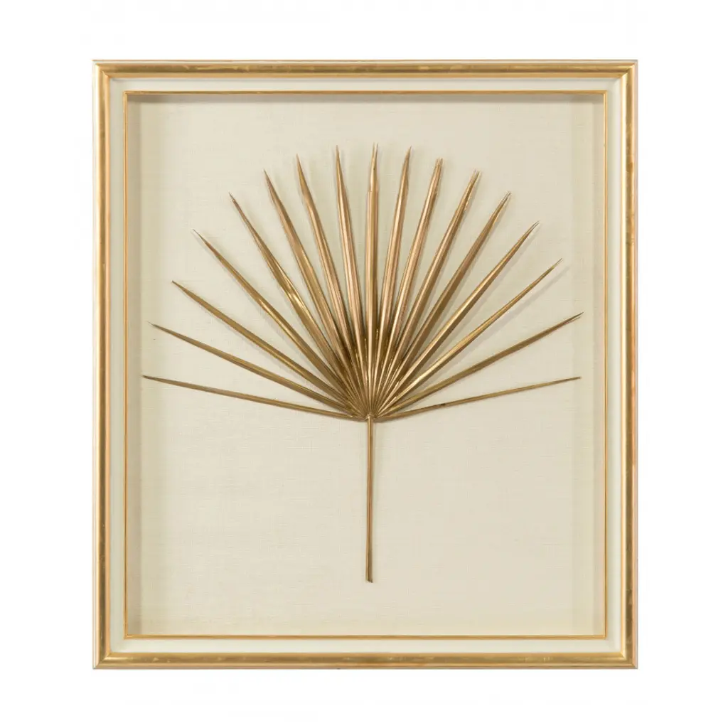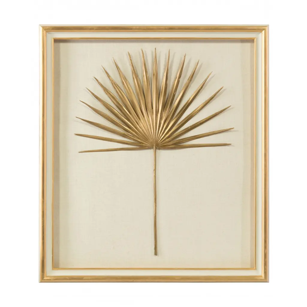 Bring a large botanical element into your living space with our head-turning Palm Leaf Shadow Box Art. The painted natural leaf is set on a linen backdrop and varies from piece to piece, making each one of a kind.