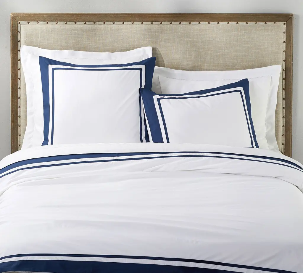 Two bands in a contrasting color give our Parker Duvet Cover its crisp, tailored look. Woven of organic cotton, it’s soft and cool to the touch, making it an ideal layer for warmer nights.