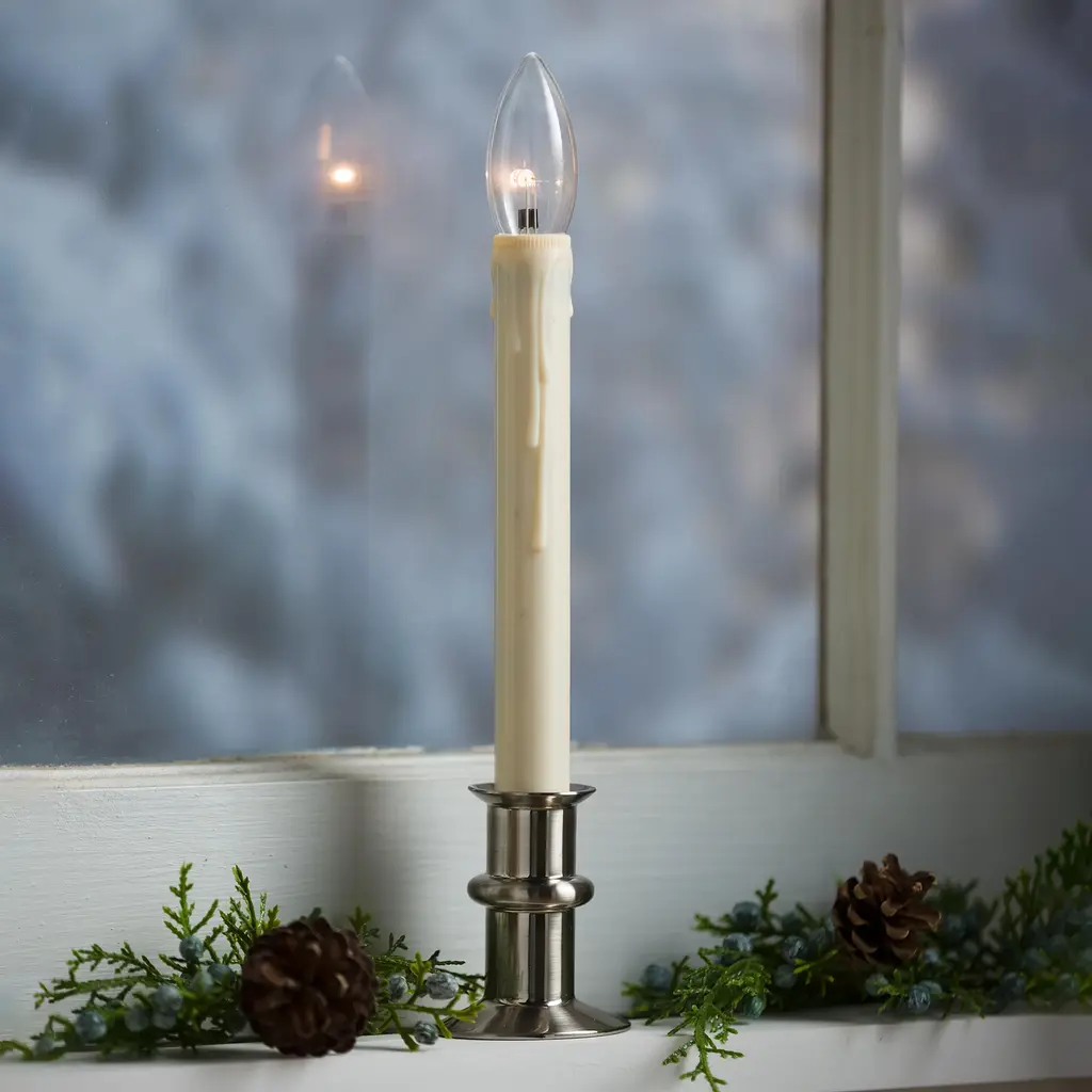 Open Box: Premium Flickering Flameless Wax Taper Candle, Single 8" - Cameo Rose