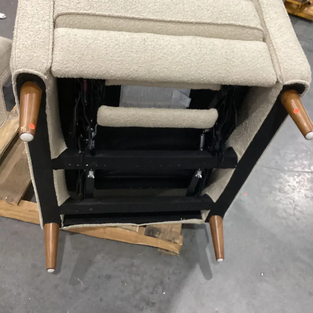 Upholstered and assembled in the USA, our Rhys Mid-Century Recliner gets its vintage spin from button tufting and piped seams on a slick frame.