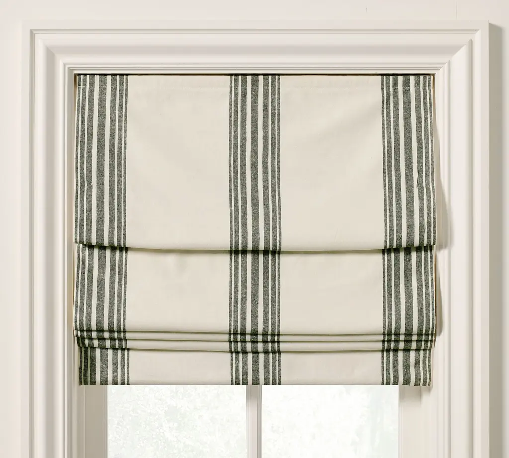 Open Box: Riviera Striped Roman Blackout Shade, 36"w X 64"l - Porcelain Blue