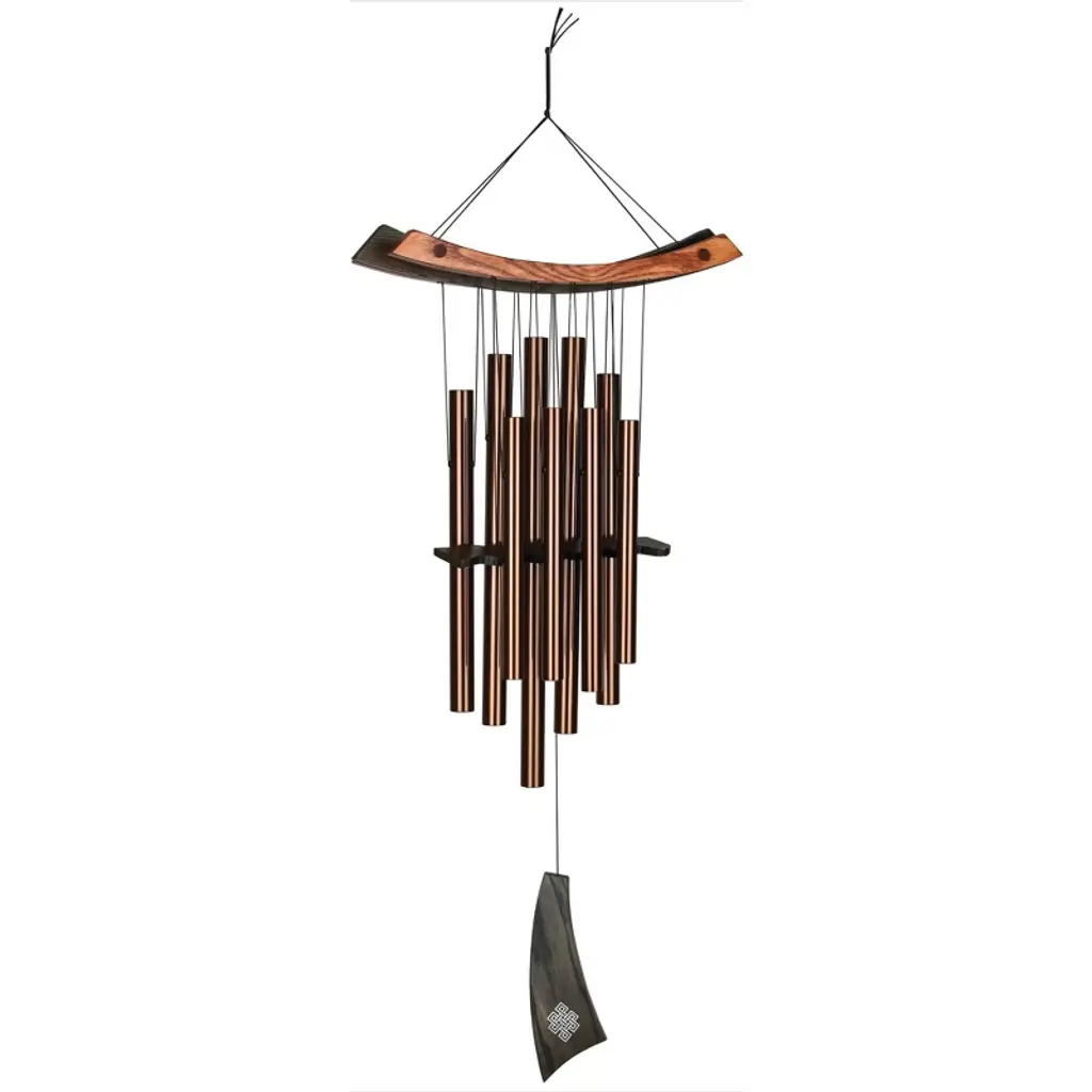 An Outlet Deal may show wear from moderate use. The item may arrive with damaged packaging or be repackaged. It may have minor cosmetic damage, such as scratches on it or show other signs of previous use. The item may be missing accessories and it may not be used until those accessories are purchased separately.Sound therapy for outdoor spaces. Turn a patio or garden nook into a peaceful sanctuary with this handcrafted wind chime, featuring five brass rings that resonate with the soulful hum of Tibetan singing bowls.