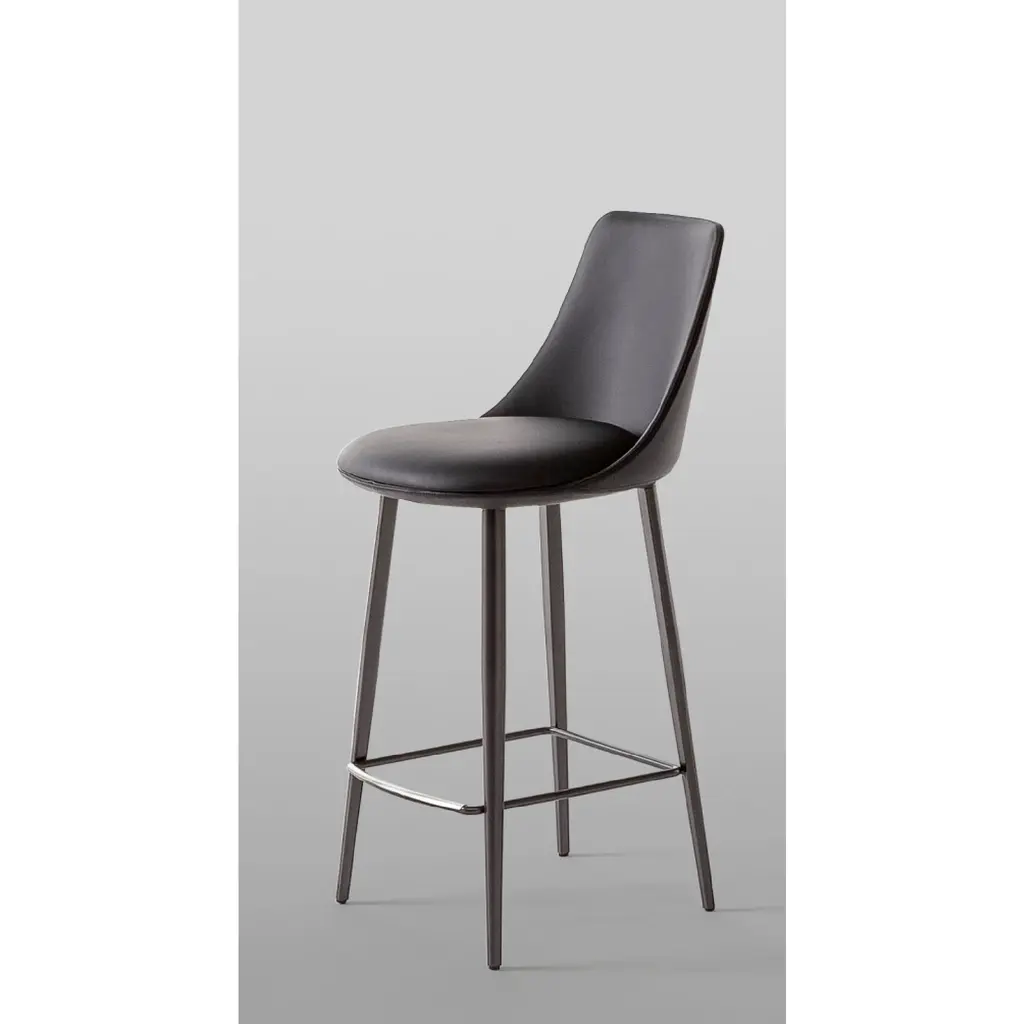 Its sloped seat is all about comfort. Covered in beautiful, long-lasting leather. Choose your height: Bar or counter. Contract Grade, so you know it's built to last.