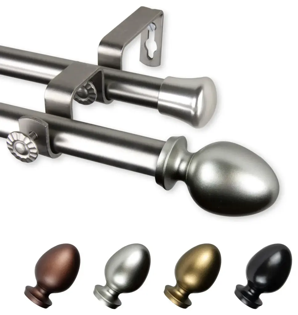 A simple yet elegant design that adds the finishing touch to your room's view. With everything you need to hang a new set or dress up your current window treatments, each piece works together to complete the look. This double rod lets you layer two sets of curtains, so you can get something that's decorative and light-filtering.