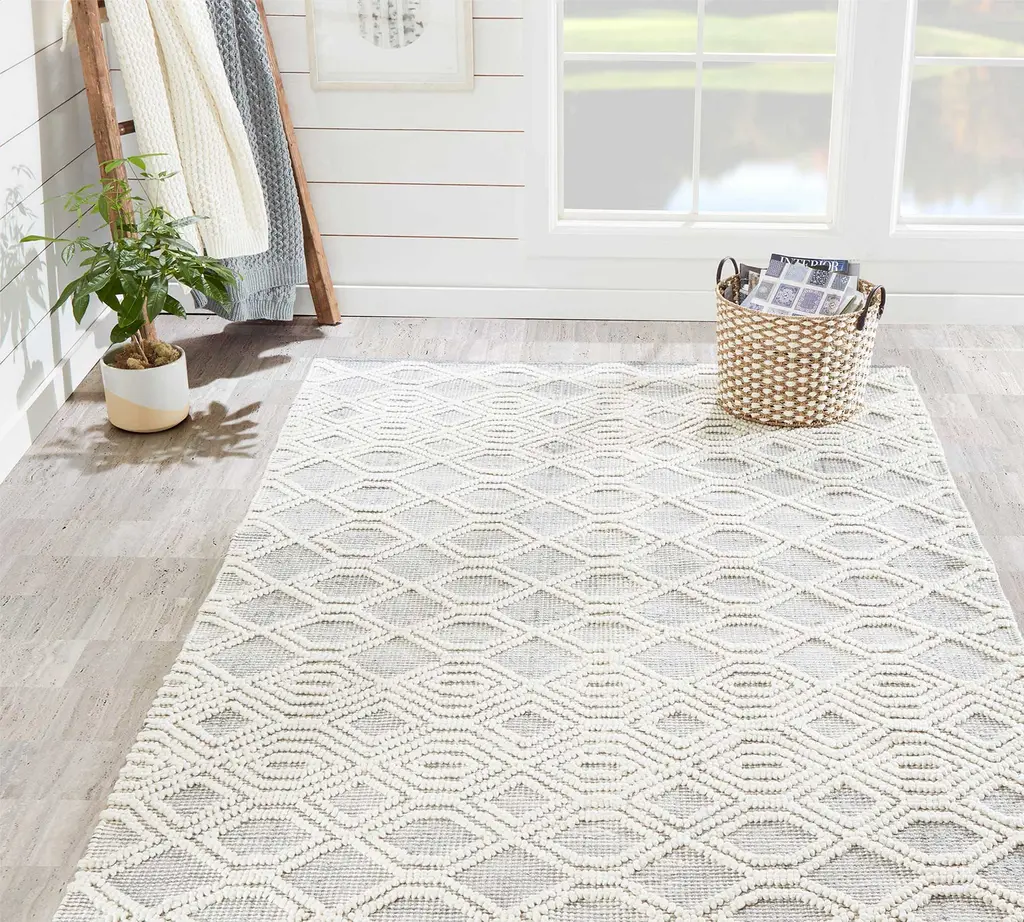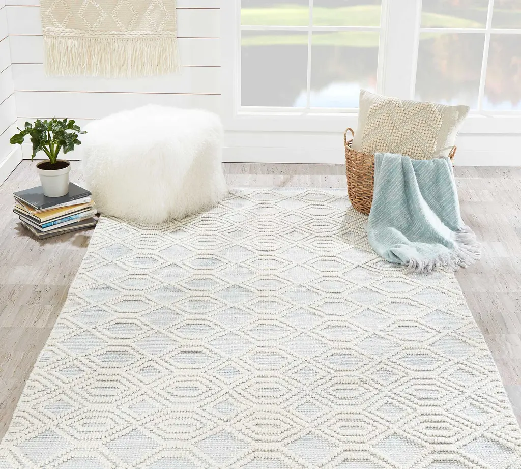 A step in the right direction for sustainability, the Theros Recycled Material Rug is a beautiful, eco-friendly accent rug that boasts an asymmetrical geometric design. It's constructed of fibers spun from single-use bottles, which keeps plastic out of delicate eco-systems and prevents unsustainable farming practices.
