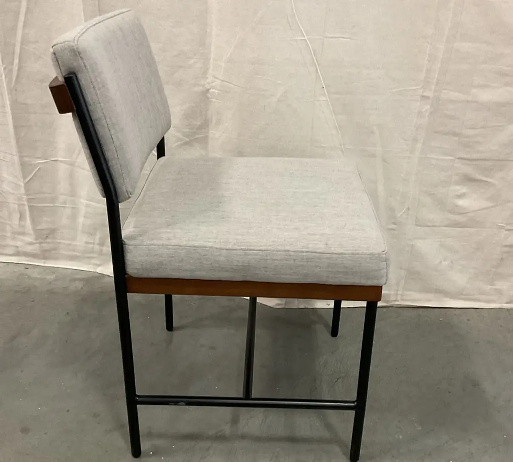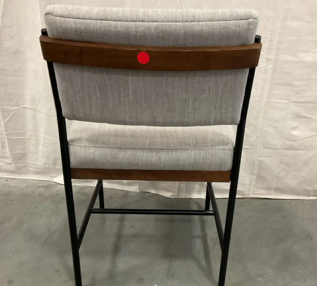 Simple and streamlined, this dining chair adds modern style to your dinner table. Wynham’s streamlined iron silhouette features a floating back and a wood deck. The padded seat is beautifully upholstered, giving this minimalist profile a tailored look.