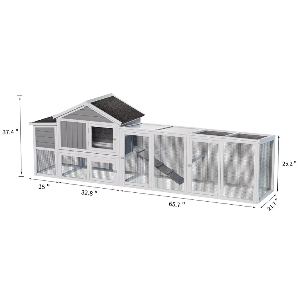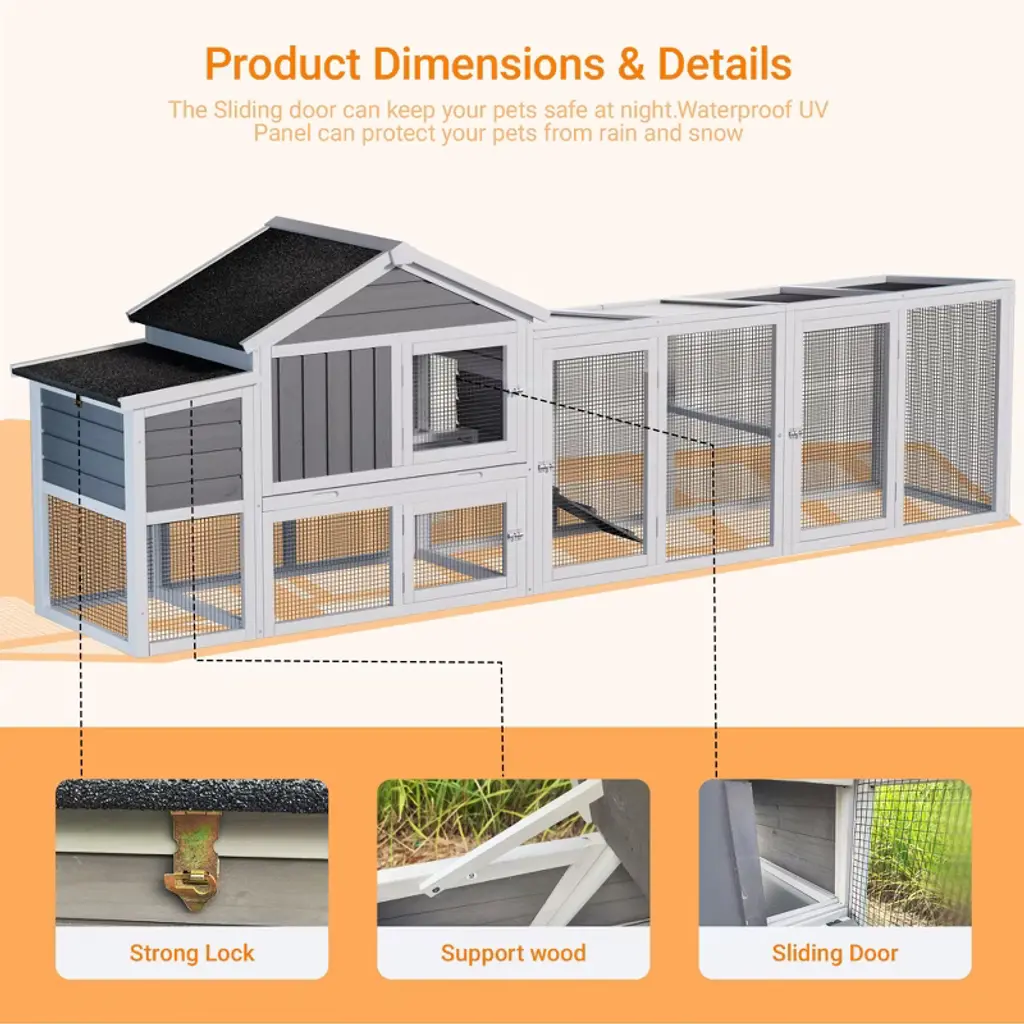 Orrd 113.5" Gray Large Wooden Chicken Coop With Run, Waterproof Anti-uv Roof, Nesting Box & Secure Lock