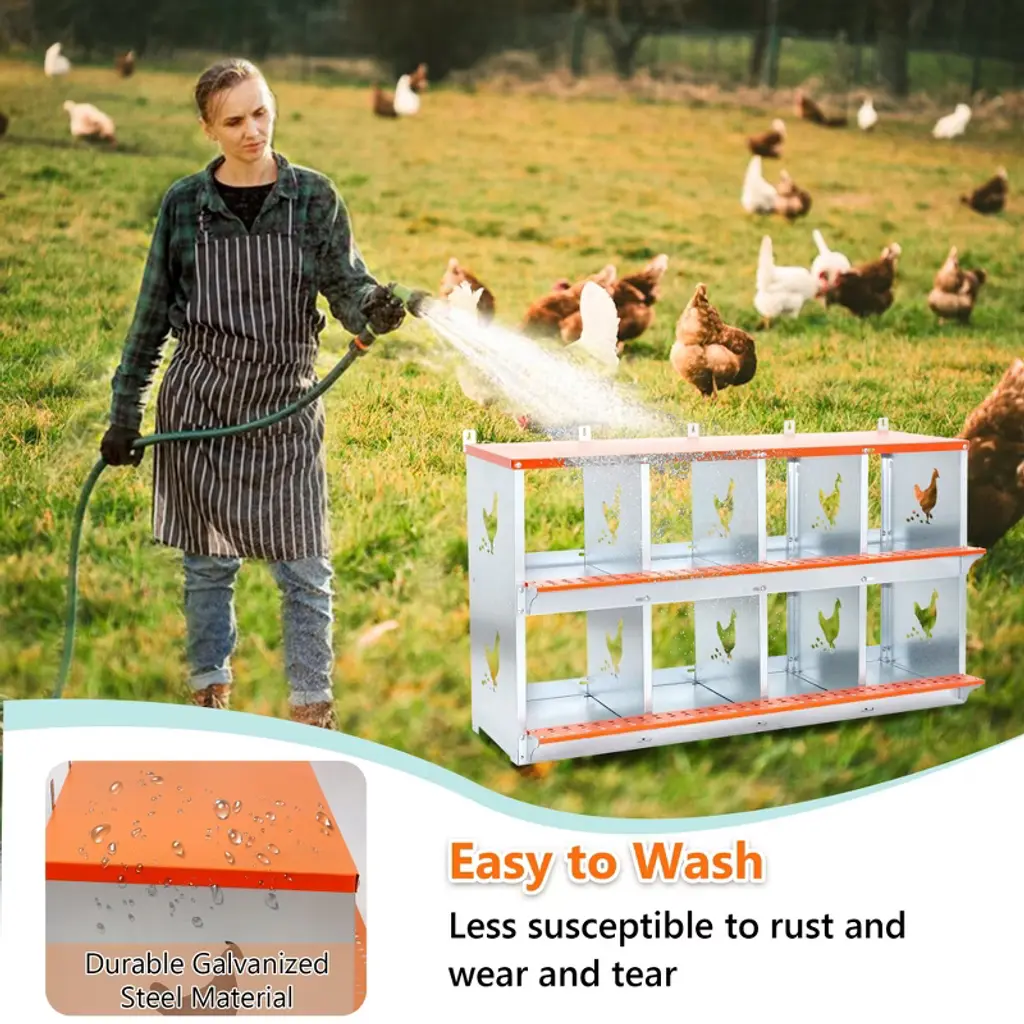 Orrd 8-bay Metal Nest Box, Wall-mount Galvanized Steel Hen & Duck Coop With Vented Design, Easy Egg Collection
