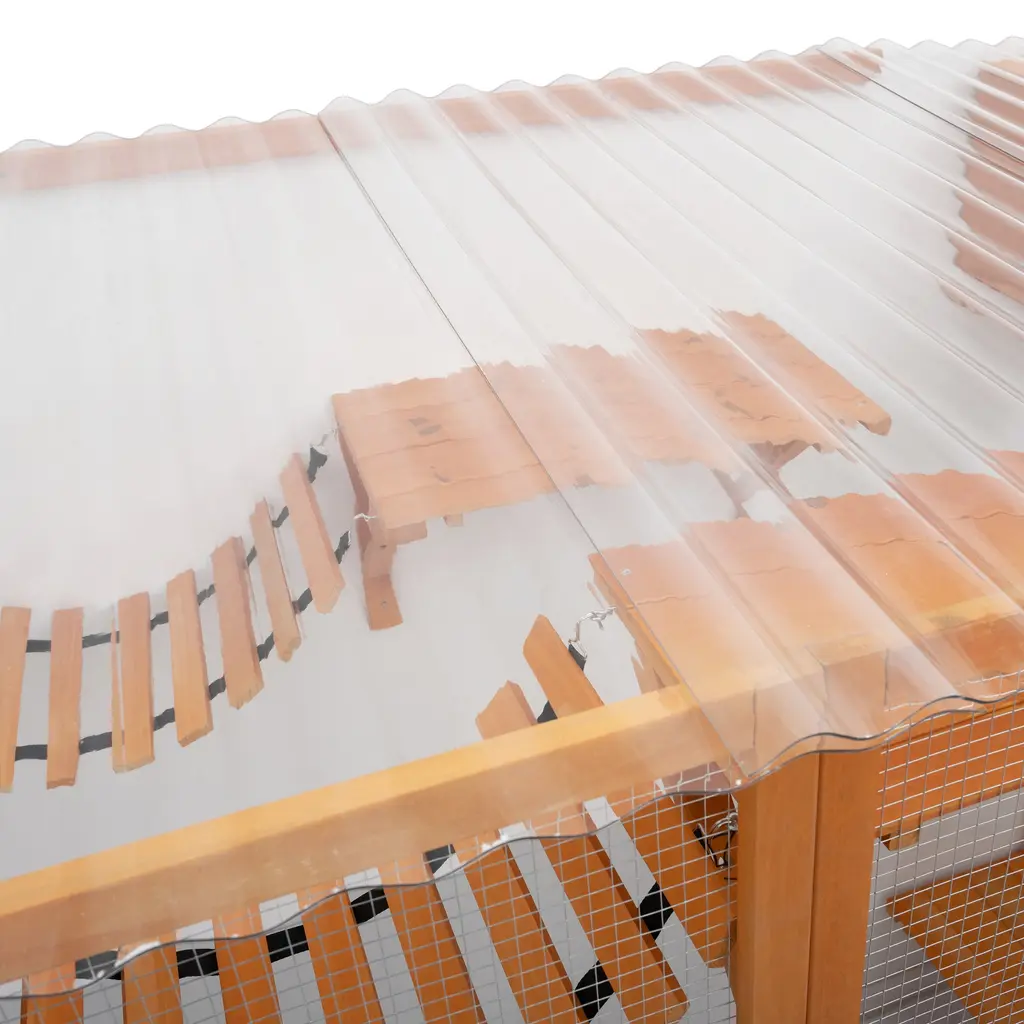 Warm tips: Product after-sales guide 🚀Thank you for purchasing our products!Please do not return the product in case of problems. Please take a photo and send it to us, we will quickly process and provide a reasonable solution. Thank you for your cooperation! 🙏DESIGN: Large outdoor natural cat enclosure with FREE WOOD HOUSE.Extended Cat Patio From Window: Assemble this cat cage outside a window and give your kitties their own cat patio to play and nap in the fresh air.MORE SPACE: It features 6 long platforms, 2 bridges to run across, 2 scratching posts, and 2 sleeping houses at the tippy tops in the corners.MORE THOUGHTFUL: Cats will be able to enjoy being outside even in the rain cause high-quality transparent PVC roofs give weather protection.SAFETY: High-quality materials ensure the health of people and pets.LONG-TERM USE: The smooth surface and sturdy solid wood ensure durability.FREE WOOD HOUSE: We will provide a 100% wood made small cat house with the large product delivered together to provide your cats a nice place to sleep.