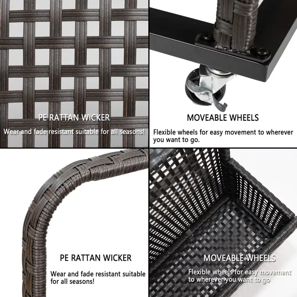 This durable poolside storage box features hand-woven PE rattan, a sturdy steel frame, ample compartments with fold-out shelves, and caster wheels for easy mobility. Ideal for organizing pool toys and accessories, it’s perfect for patios, gardens, and balconies.
