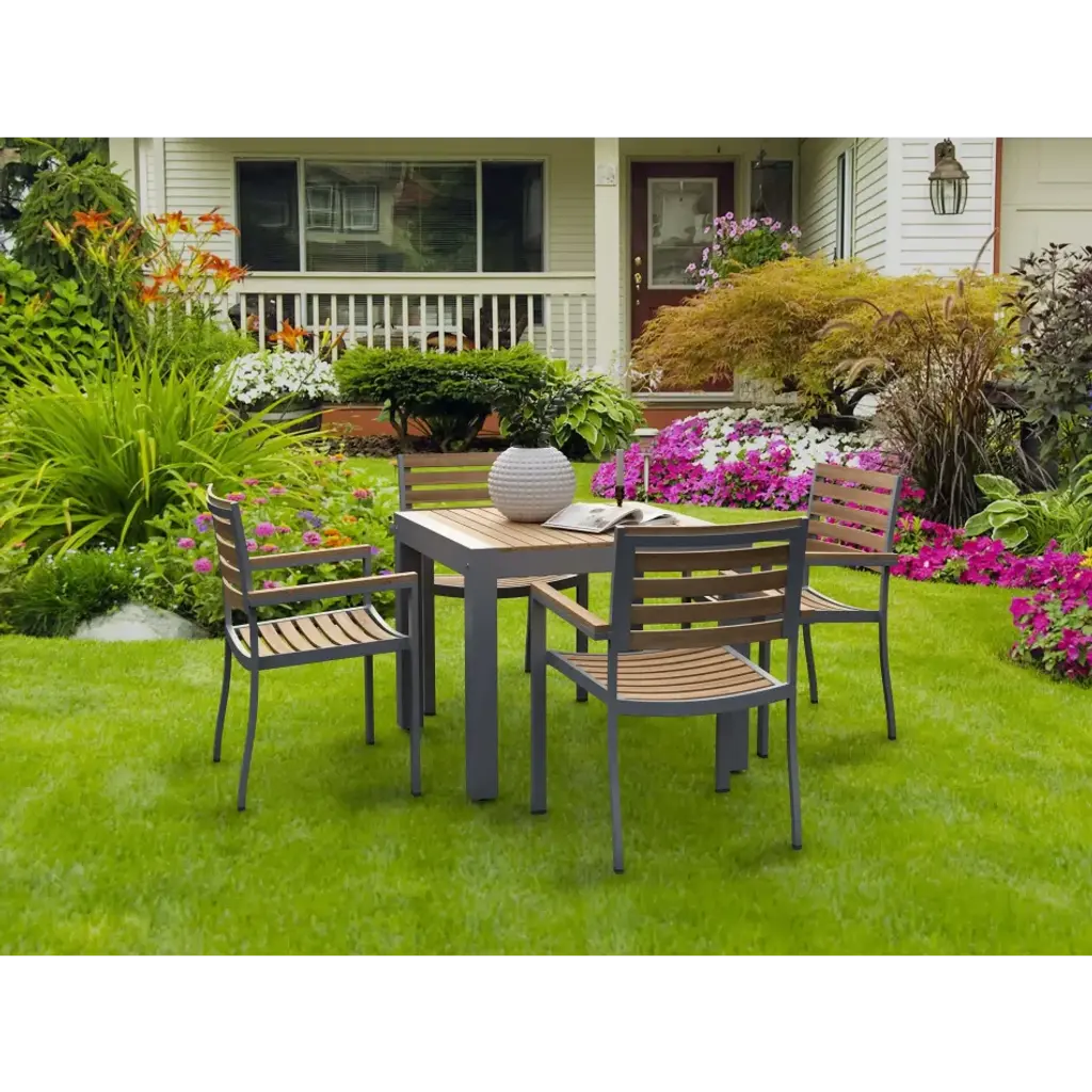 Take a seat and enjoy fine patio dining with the Seville Stackable Armchair. Lightweight and durable, the chair features aluminum powder-coated frames and natural unfinished teak wood ideal for outdoor use. Rubber footcaps added for greater stability and scratch resistance.