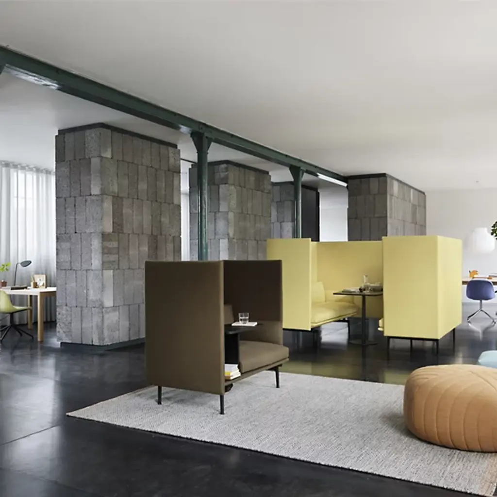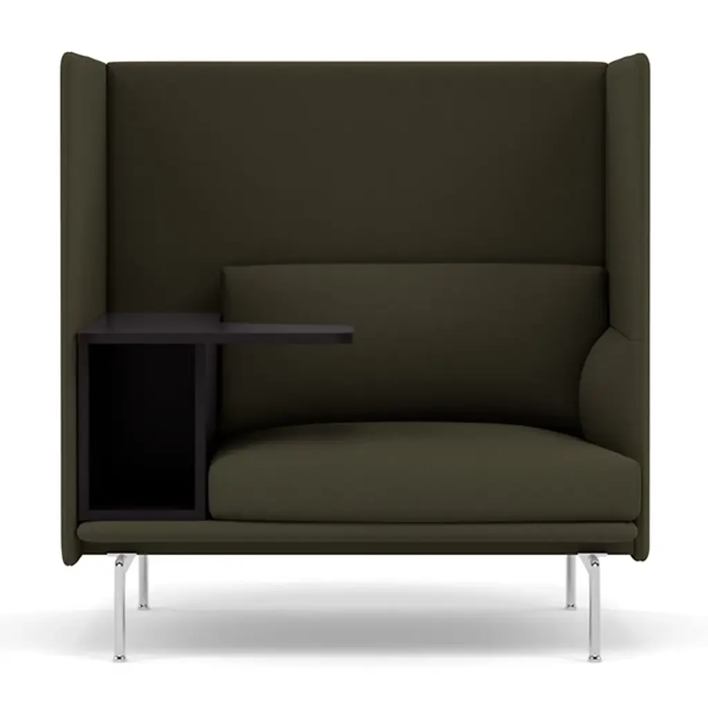 Get some work done in privacy and comfort with the space-carving design of the Outline Highback Work from Muuto. This Anderssen & Voll piece comes from a place of wanting to stimulate the senses. Using Scandinavian design principles, the studio creates pieces that feel soulful. Here, traditional seating is imagined as a private sphere with a set of 3 tall walls. These walls block out visual distractions and acoustics. Tucked inside, a back and seat rest invite long study sessions with soft, supportive materials. An L-shaped table surface on the side swings forward for studio tasks with a minimalist storage container.