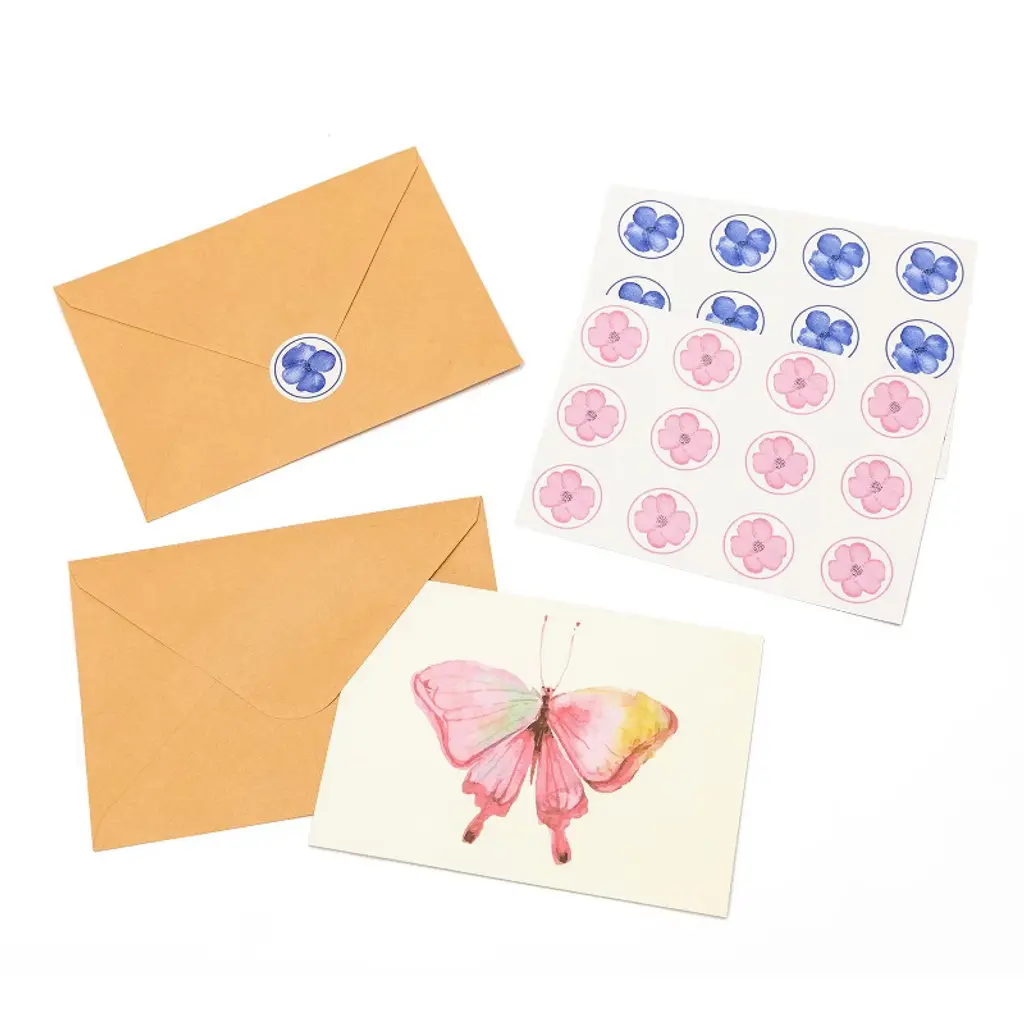 Outshine Co Blank Note Cards With Envelopes And Seals In Storage Box - Set Of 36 (Bee & Butterfly)