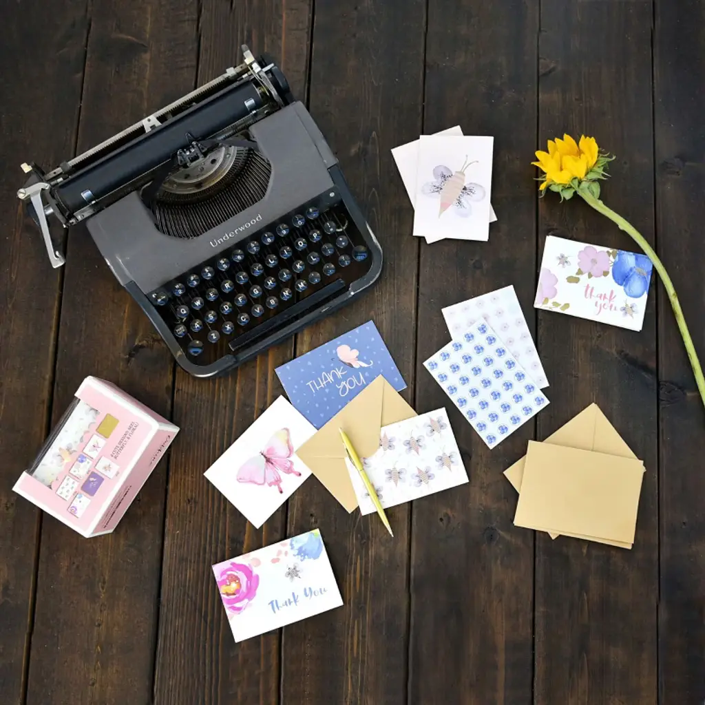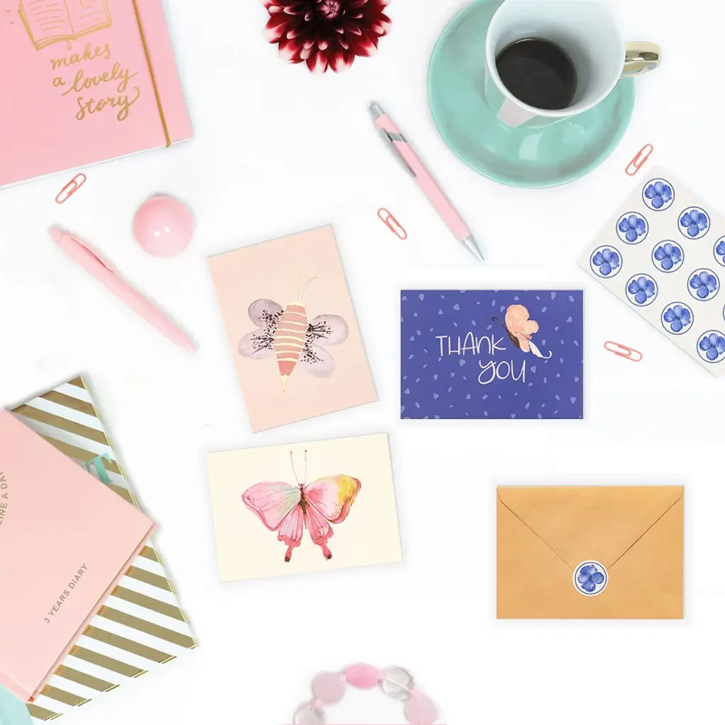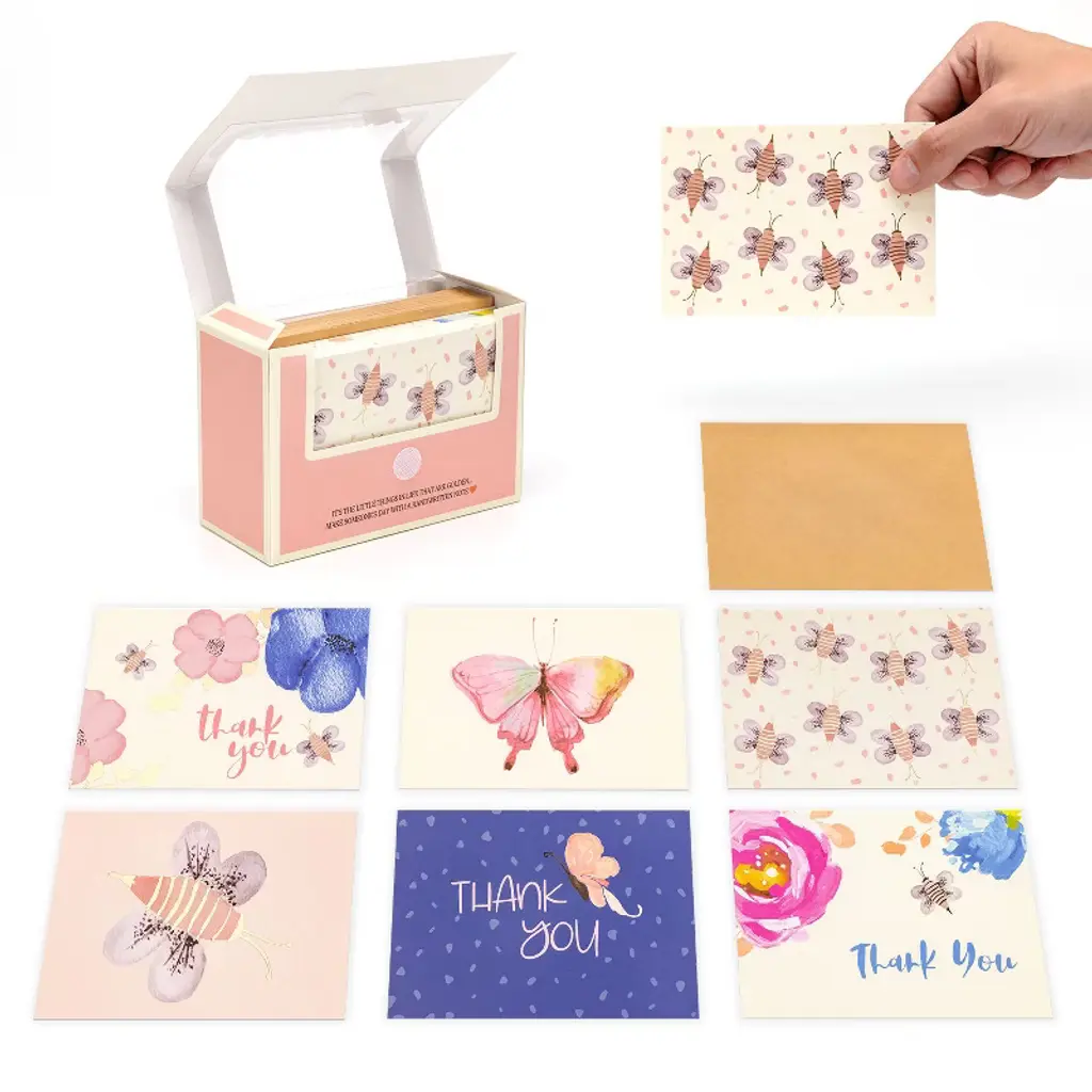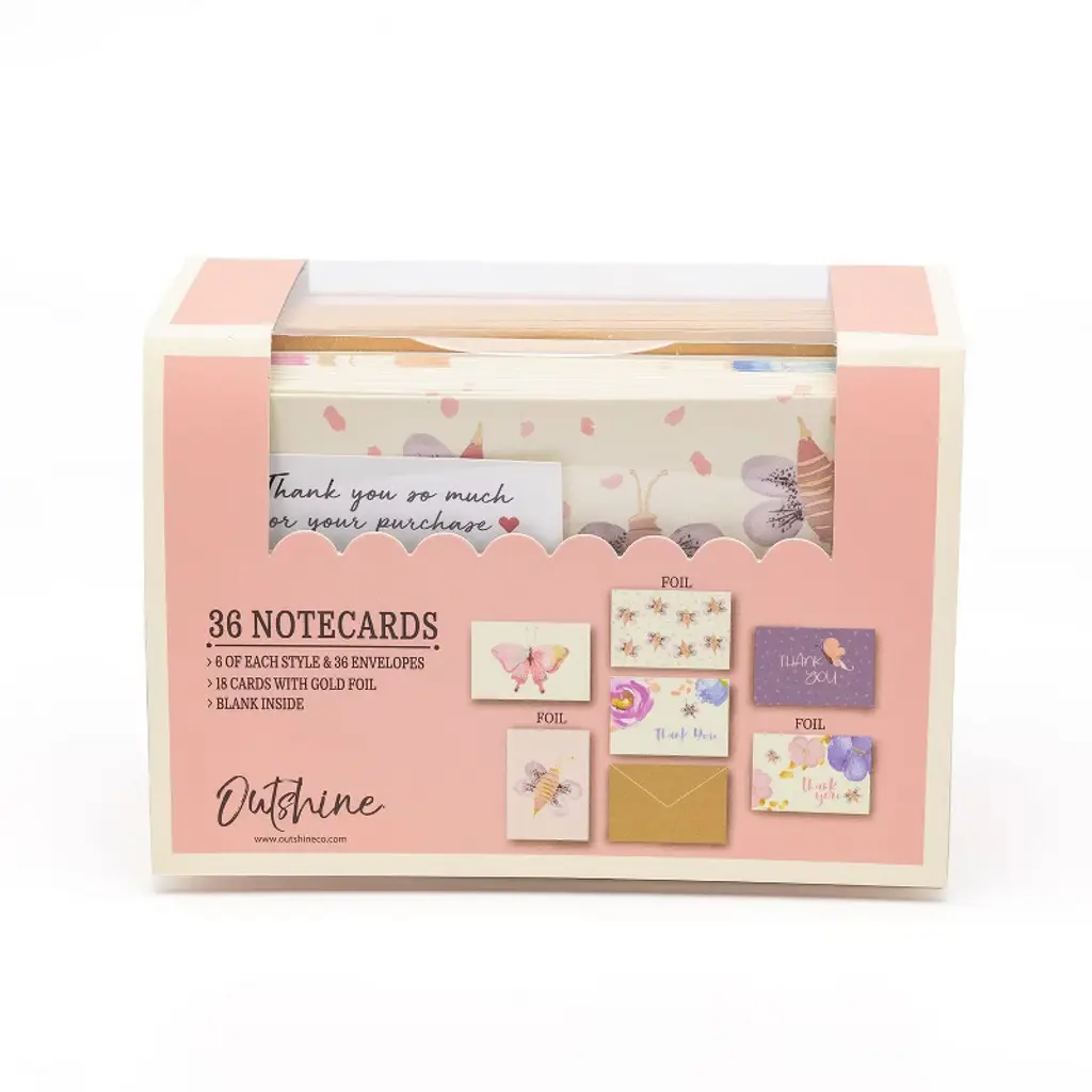 Outshine Blank Note Cards with Envelopes and Seals in Storage Box - Set of 36 (Bee & Butterfly) | 3.5" x 5" Blank Cards with Envelopes All Occasion | Greeting Cards, Thank You Cards, Birthday Cards