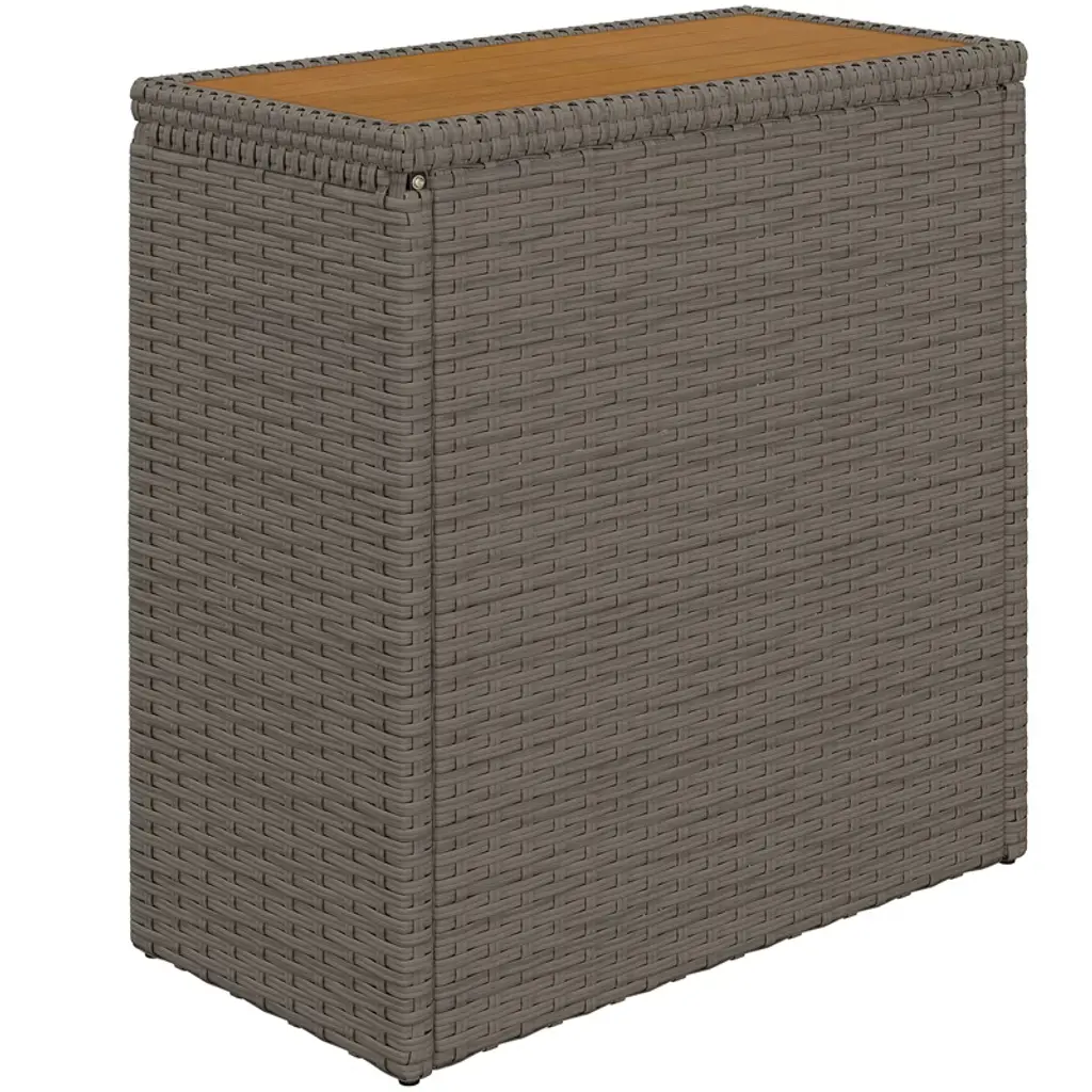 Discover the charm and functionality of the Outsunny wicker storage chest! Boasting a 17.3-gallon capacity, this outdoor storage cabinet features an easy-to-use pneumatic rod opening mechanism and a convenient side groove handle. Topped with an acacia wood slatted design, it effortlessly doubles as a side table for whatever you might need. Great for any outdoor setting, it's your stylish solution for keeping your deck or patio organized.
