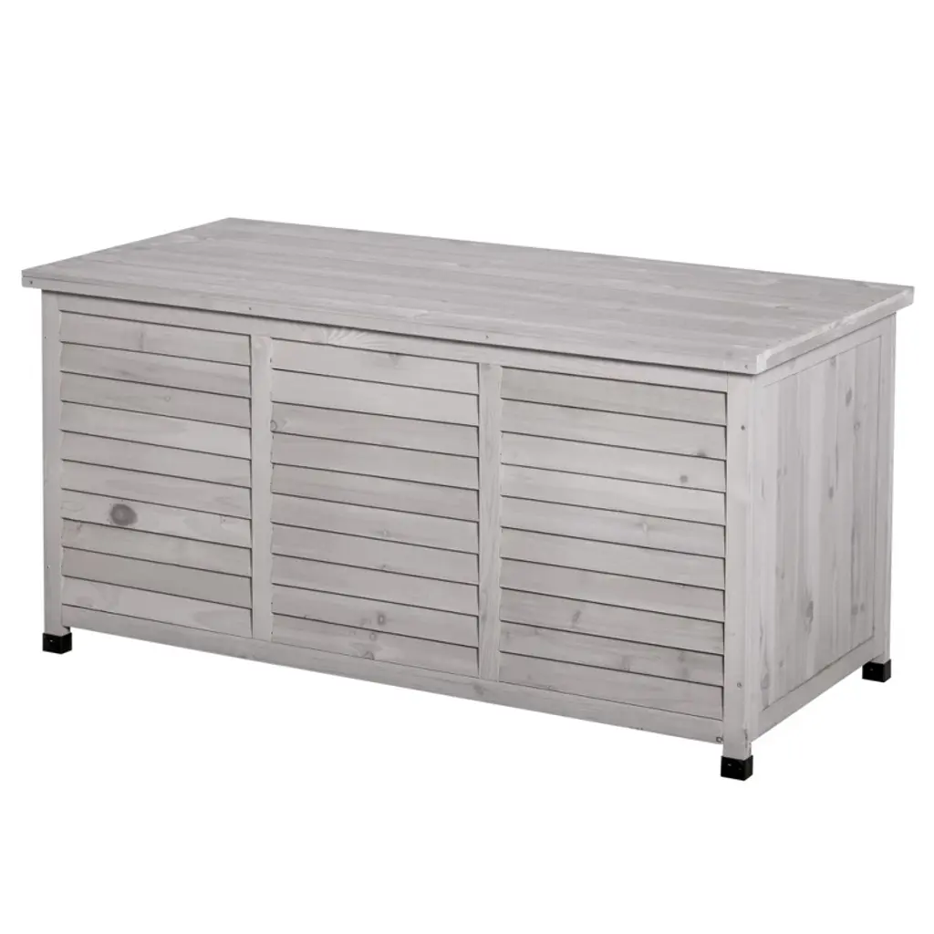 This Outsunny outdoor storage box is an ideal solution to have in your garden, backyard, and deck. With a large size and spacious design, the deck box is a great place to store tools, garden equipment, and any other garden accessories. Made with durable wood and water-fighting paint, the wood storage box is protected from the environment, and sure to last. Furthermore, this storage chest isn't just for storage: it could also be used as a garden workbench, small table, or just as a nice place to sit and rest. Check out this outdoor storage box from Outsunny, and get a place to store your outdoor tools.