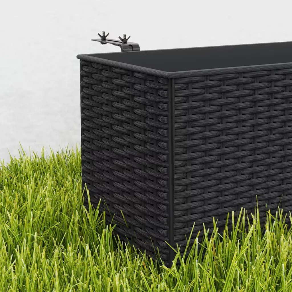 Outsunny Railing Planter Box (2 Pack, 20 Inch), Hanging Flower Pots With Hooks, Drainage Holes For Fence, Balcony, Garden, Patio, Rattan Look, Black