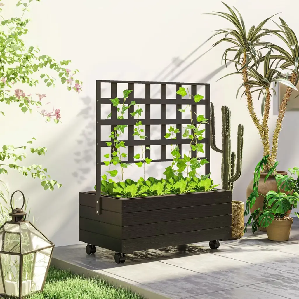 Outsunny Wooden Garden Planter With Trellis And Wheels, Freestanding Garden Box For Garden, Patio, Balcony