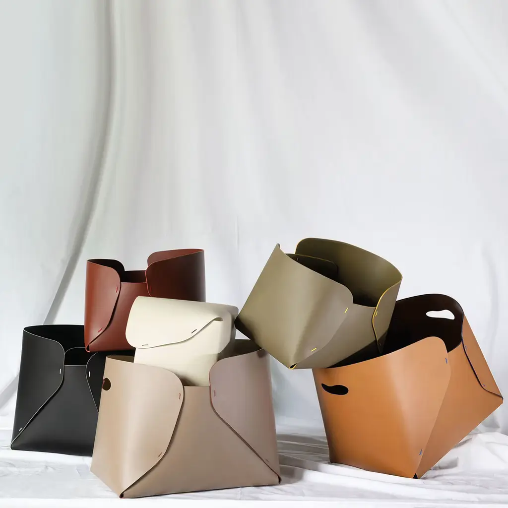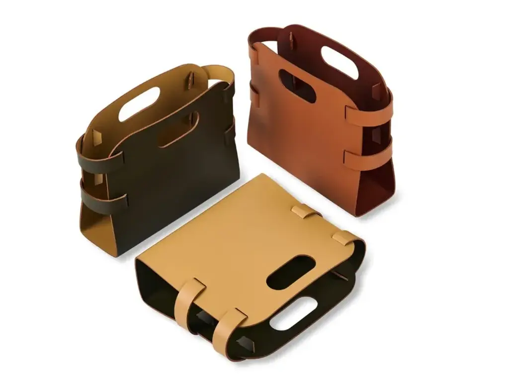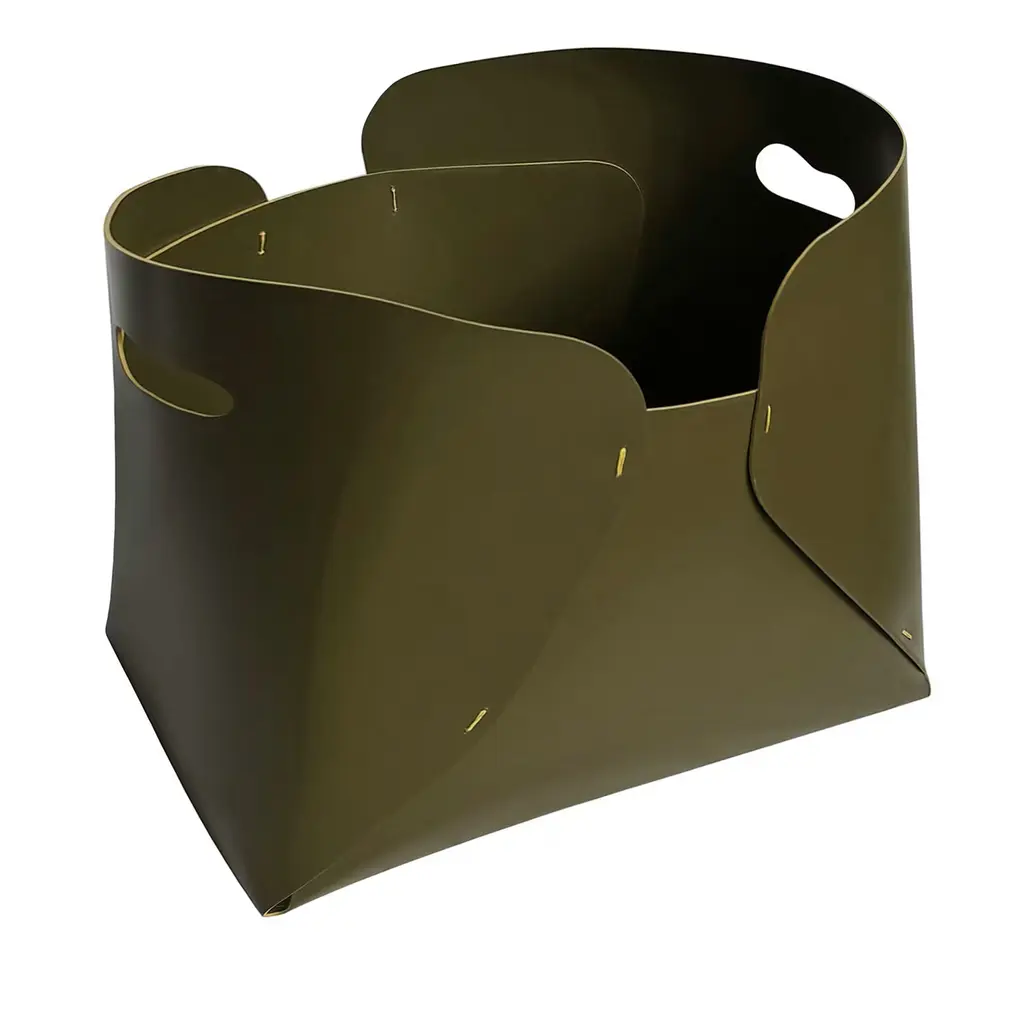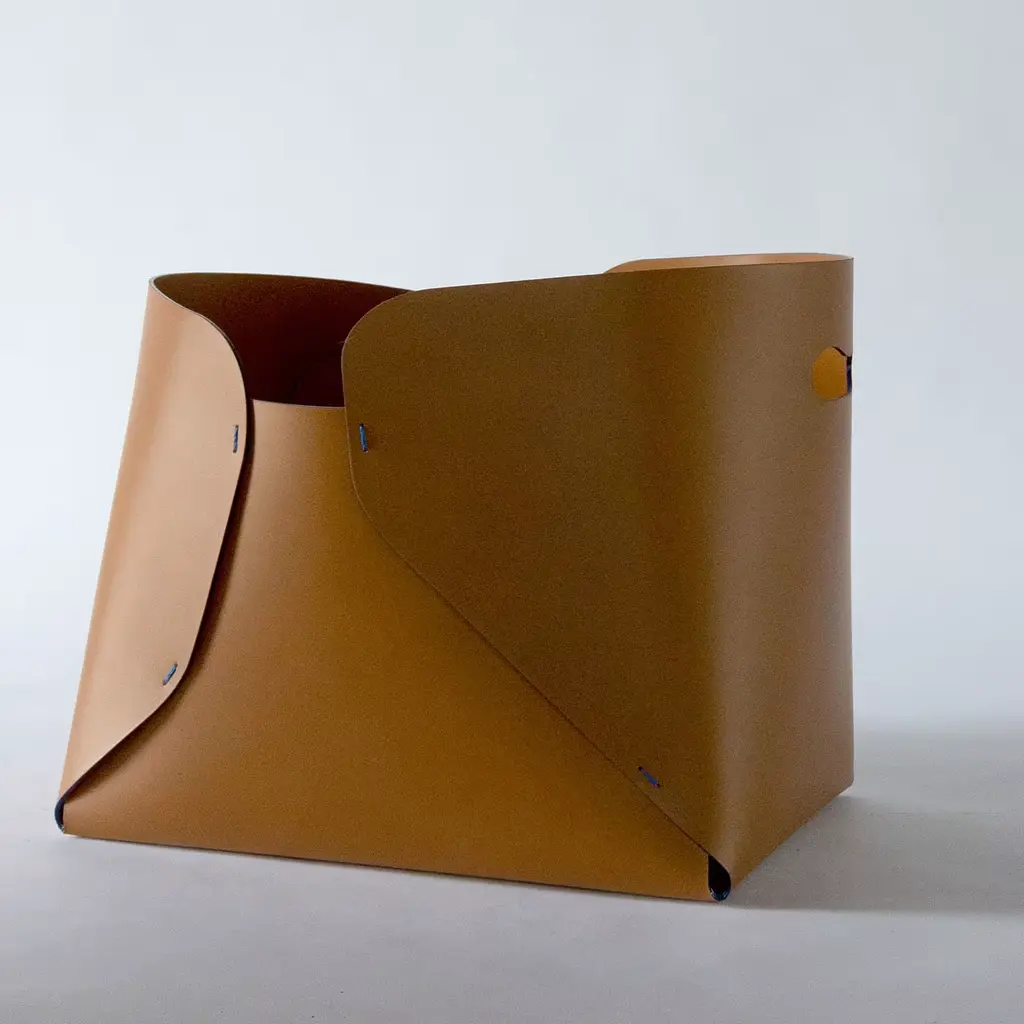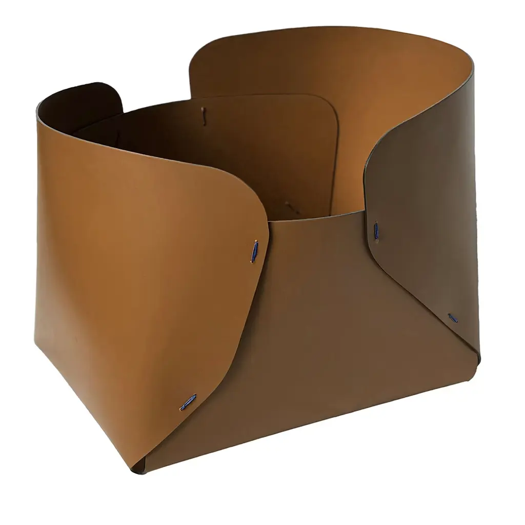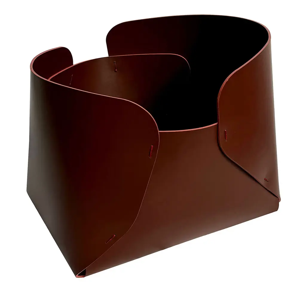 The Overlap baskets are crafted from a single piece of leather, with the final shape determined by the cut design. The design choice of minimal stitching and contrasting profile serves to accentuate the edges, highlighting the form and design of the baskets. Handcrafted by artisans in Florence, they are available in different leather finishes, each paired with a specific contrasting color profile. Please, contact the Concierge for further information and options.