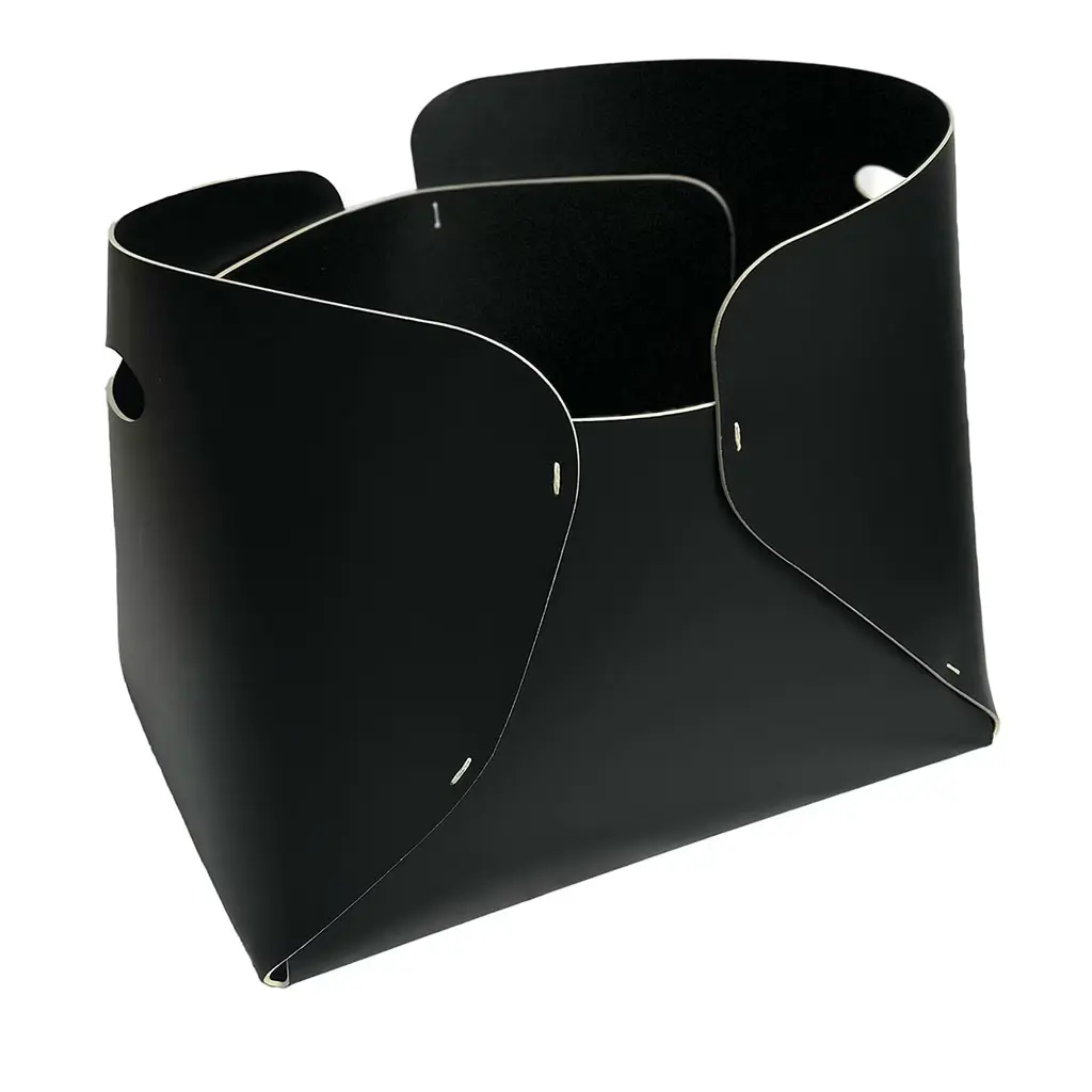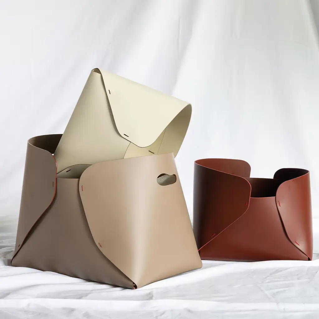 Harmonious curves achieved by expertly cutting single sheets of fine leather trace the sleek silhouette of this exclusive box. Dainty orange stitches and thin borders contrast with the rich chestnut coloring for further enhancing the box's dynamic simplicity. Carefully handcrafted by master Florentine craftsmen, the piece is available in different colors that can be explored with the Concierge (black/cream, cream/olive, mud/chestnut, natural/blue, and olive/mustard).